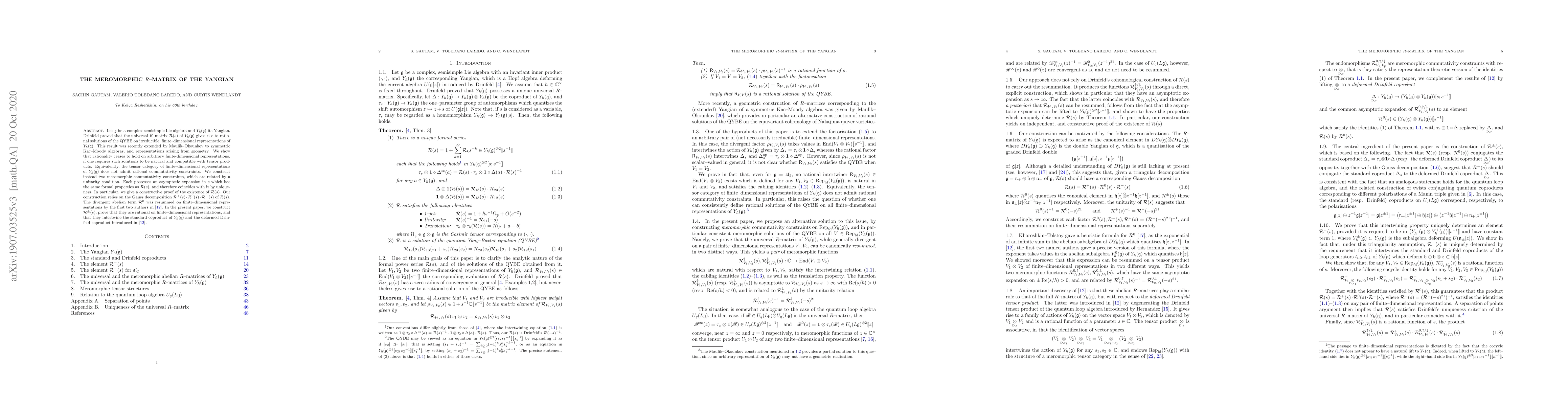 Researchers found that rational solutions to quantum Yang-Baxter equations don't exist for arbitrary finite-dimensional representations of a complex semisimple Lie algebra's Yangian. Instead, they constructed two meromorphic commutativity constraints that coincide with the universal R-matrix.