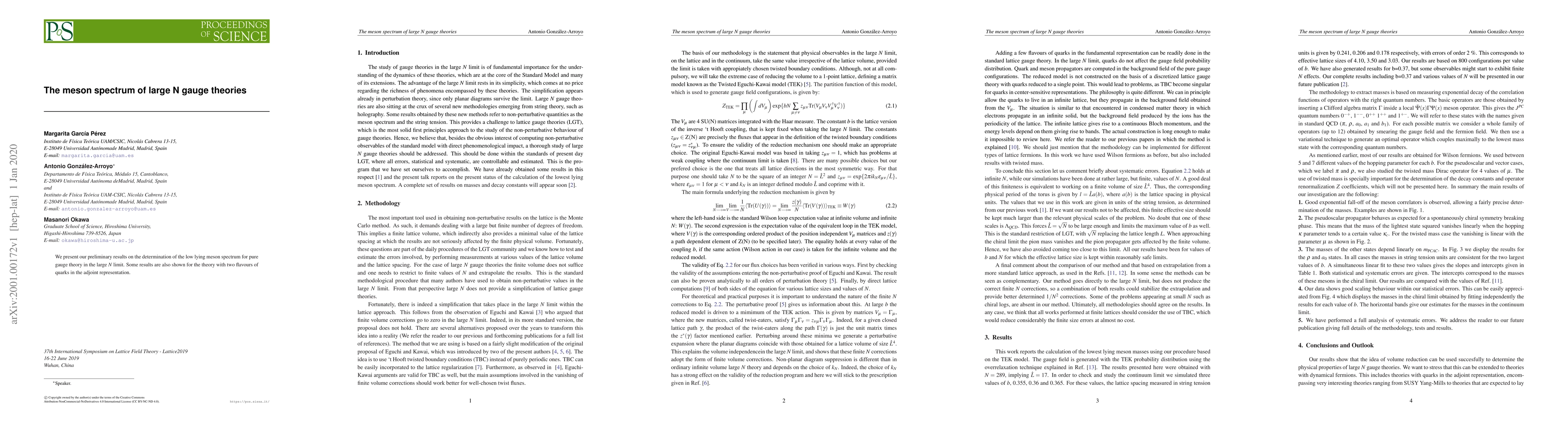 Summary: This paper reports preliminary findings on the low-lying meson spectrum in large $N$ limit pure gauge theories and includes results for theories with two quark flavors in the adjoint representation.