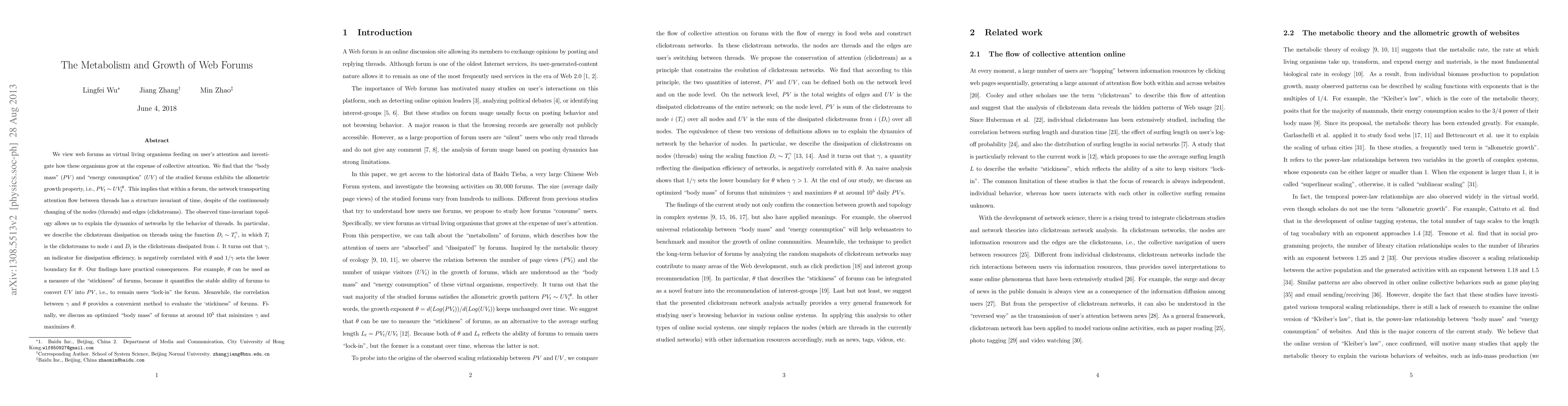 We view web forums as virtual living organisms feeding on user's attention and investigate how these organisms grow at the expense of collective attention. We find that the "body mass" ($PV$) and "energy consumption" ($UV$) of the studied forums exhibits the allometric growth property, i.e., $PV_t \sim UV_t ^ \theta$. This implies that within a forum, the network transporting attention flow between threads has a structure invariant of time, despite of the continuously changing of the nodes (threads) and edges (clickstreams). The observed time-invariant topology allows us to explain the dynamics of networks by the behavior of threads. In particular, we describe the clickstream dissipation on threads using the function $D_i \sim T_i ^ \gamma$, in which $T_i$ is the clickstreams to node $i$ and $D_i$ is the clickstream dissipated from $i$. It turns out that $\gamma$, an indicator for dissipation efficiency, is negatively correlated with $\theta$ and $1/\gamma$ sets the lower boundary for $\theta$. Our findings have practical consequences. For example, $\theta$ can be used as a measure of the "stickiness" of forums, because it quantifies the stable ability of forums to convert $UV$ into $PV$, i.e., to remain users "lock-in" the forum. Meanwhile, the correlation between $\gamma$ and $\theta$ provides a convenient method to evaluate the `stickiness" of forums. Finally, we discuss an optimized "body mass" of forums at around $10^5$ that minimizes $\gamma$ and maximizes $\theta$.