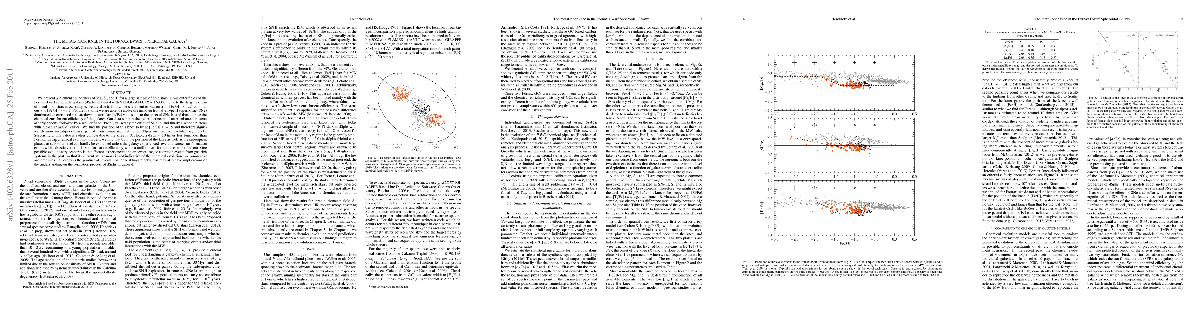 The Fornax dwarf spheroidal galaxy has a unique 'knee' in its chemical evolution, at [Fe/H]=-1.9, indicating multiple star formation events or accretion from gas-rich systems.
