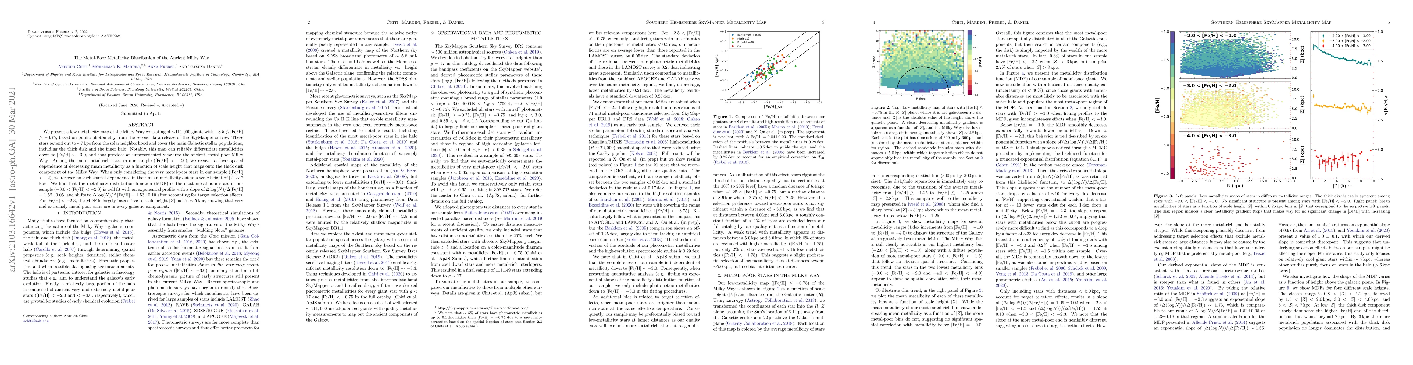 We present a low metallicity map of the Milky Way consisting of $\sim$111,000 giants with $-3.5 \lesssim$ [Fe/H] $\lesssim -$0.75, based on public photometry from the second data release of the SkyMapper survey. These stars extend out to $\sim$7kpc from the solar neighborhood and cover the main Galactic stellar populations, including the thick disk and the inner halo. Notably, this map can reliably differentiate metallicities down to [Fe/H] $\sim -3.0$, and thus provides an unprecedented view into the ancient, metal-poor Milky Way. Among the more metal-rich stars in our sample ([Fe/H] $> -2.0$), we recover a clear spatial dependence of decreasing mean metallicity as a function of scale height that maps onto the thick disk component of the Milky Way. When only considering the very metal-poor stars in our sample ([Fe/H] $< -$2), we recover no such spatial dependence in their mean metallicity out to a scale height of $|Z|\sim7$ kpc. We find that the metallicity distribution function (MDF) of the most metal-poor stars in our sample ($-3.0 <$ [Fe/H] $< -2.3$) is well fit with an exponential profile with a slope of $\Delta\log(N)/\Delta$[Fe/H] = 1.52$\pm$0.05, and shifts to $\Delta\log(N)/\Delta$[Fe/H] = 1.53$\pm$0.10 after accounting for target selection effects. For [Fe/H] $< -2.3$, the MDF is largely insensitive to scale height $|Z|$ out to $\sim5$kpc, showing that very and extremely metal-poor stars are in every galactic component.