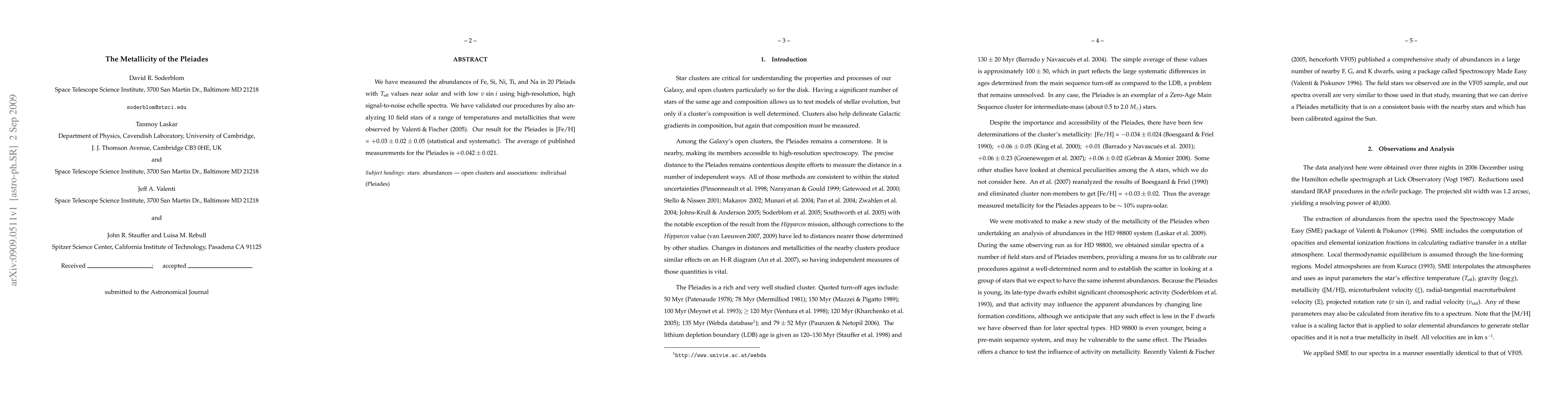 The study measured Fe, Si, Ni, Ti, and Na abundances in 20 Pleiad stars, finding [Fe/H] = +0.03±0.02±0.05, consistent with previous results of +0.042±0.021. Validation was done using 10 field stars of varying temperatures and metallicities.