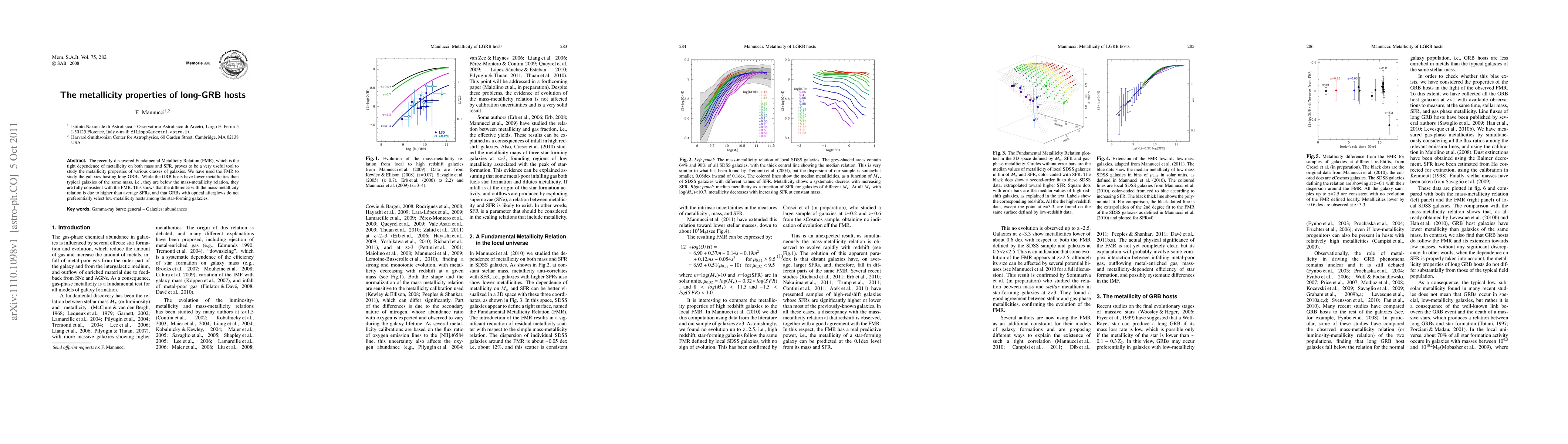 The recently-discovered Fundamental Metallicity Relation (FMR), which is the tight dependence of metallicity on both mass and SFR, proves to be a very useful tool to study the metallicity properties of various classes of galaxies. We have used the FMR to study the galaxies hosting long-GRBs. While the GRB hosts have lower metallicities than typical galaxies of the same mass, i.e., they are below the mass-metallicity relation, they are fully consistent with the FMR. This shows that the difference with the mass-metallicity relation is due to higher than average SFRs, and that GRBs with optical afterglows do not preferentially select low-metallicity hosts among the star-forming galaxies.