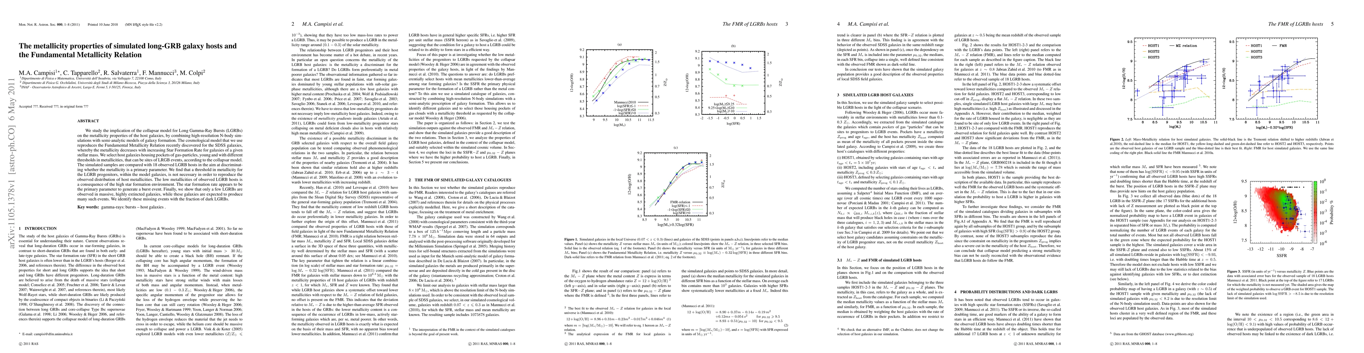We study the implication of the collapsar model for Long Gamma-Ray Bursts (LGRBs) on the metallicity properties of the host galaxies, by combining high-resolution N-body simulations with semi-analytic models of galaxy formation. The cosmological model that we use reproduces the Fundamental Metallicity Relation recently discovered for the SDSS galaxies, whereby the metallicity decreases with increasing Star Formation Rate for galaxies of a given stellar mass. We select host galaxies housing pockets of gas-particles, young and with different thresholds in metallicities, that can be sites of LRGB events, according to the collapsar model. The simulated samples are compared with 18 observed LGRB hosts in the aim at discriminating whether the metallicity is a primary parameter. We find that a threshold in metallicity for the LGRB progenitors, within the model galaxies, is not necessary in order to reproduce the observed distribution of host metallicities. The low metallicities of observed LGRB hosts is a consequence of the high star formation environment. The star formation rate appears to be the primary parameter to generate a burst event. Finally, we show that only a few LGRBs are observed in massive, highly extincted galaxies, while these galaxies are expected to produce many such events. We identify these missing events with the fraction of dark LGRBs.