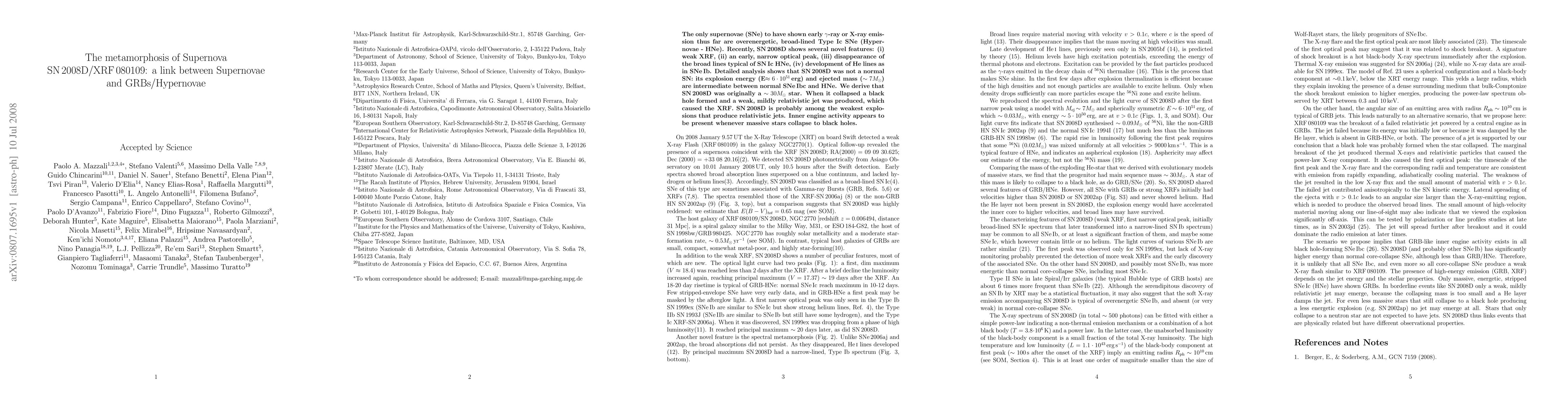 The only supernovae (SNe) to have shown early gamma-ray or X-ray emission thus far are overenergetic, broad-lined Type Ic SNe (Hypernovae - HNe). Recently, SN 2008D shows several novel features: (i) weak XRF, (ii) an early, narrow optical peak, (iii) disappearance of the broad lines typical of SNIc HNe, (iv) development of He lines as in SNeIb. Detailed analysis shows that SN 2008D was not a normal SN: its explosion energy (KE ~ 6*10^{51} erg) and ejected mass (~7 Msun) are intermediate between normal SNeIbc and HNe. We derive that SN 2008D was originally a ~30Msun star. When it collapsed a black hole formed and a weak, mildly relativistic jet was produced, which caused the XRF. SN 2008D is probably among the weakest explosions that produce relativistic jets. Inner engine activity appears to be present whenever massive stars collapse to black holes.
