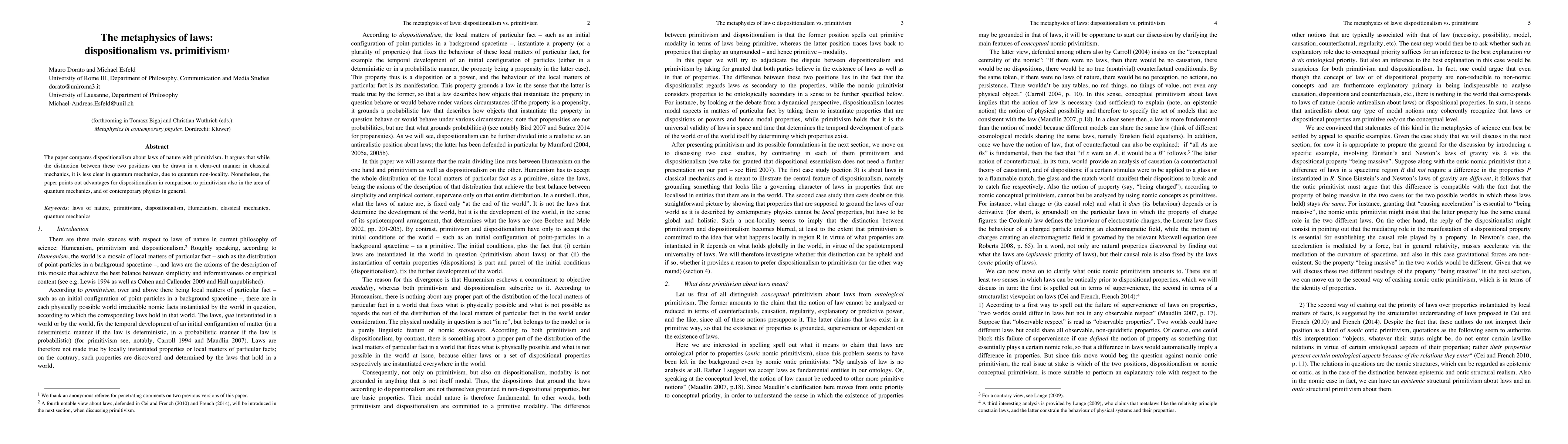 The paper compares dispositionalism about laws of nature with primitivism. It argues that while the distinction between these two positions can be drawn in a clear-cut manner in classical mechanics, it is less clear in quantum mechanics, due to quantum non-locality. Nonetheless, the paper points out advantages for dispositionalism in comparison to primitivism also in the area of quantum mechanics, and of contemporary physics in general.