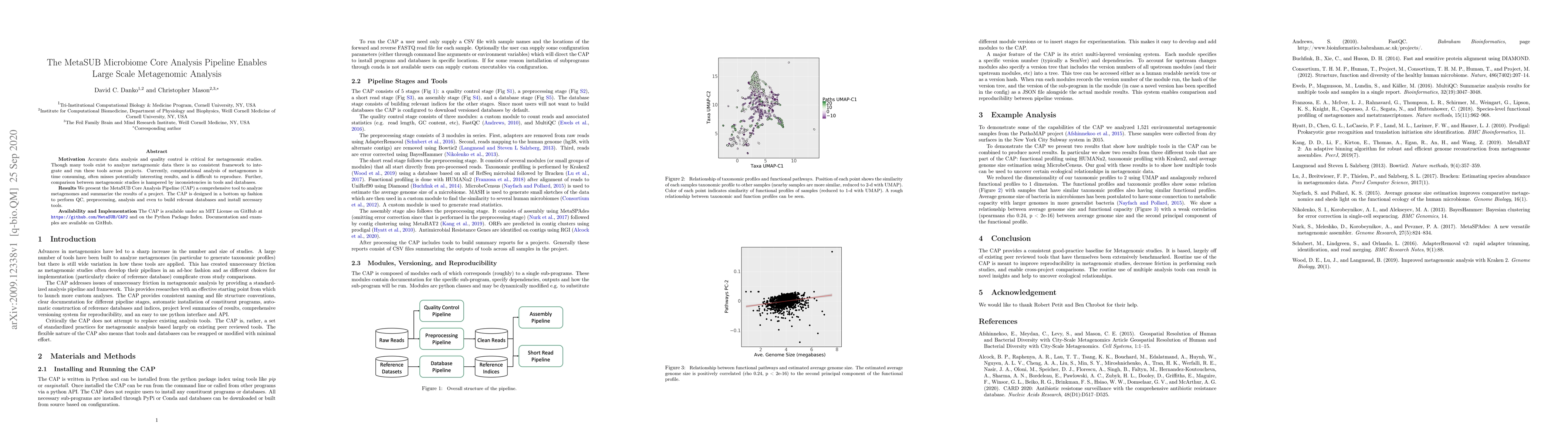 The MetaSUB Core Analysis Pipeline (CAP) provides a comprehensive framework for large-scale metagenomic analysis, integrating various tools for quality control, preprocessing, and analysis, while ensuring reproducibility and consistency across projects. Available under an MIT License, the CAP is hosted on GitHub with documentation and examples to facilitate its use.
