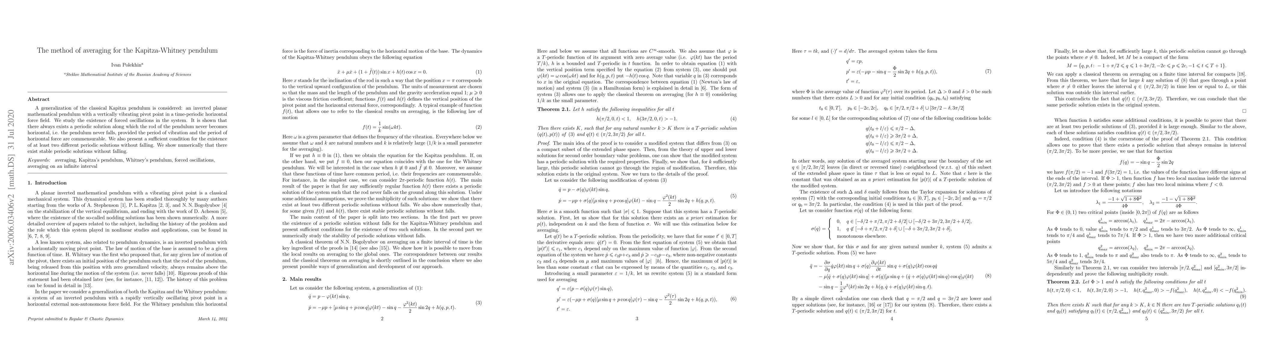 This paper explores a generalized Kapitza-Whitney pendulum with a vertically oscillating pivot under periodic horizontal forces. It confirms the existence of periodic solutions preventing the pendulum from ever becoming horizontal, especially when the oscillation periods are commensurable, and provides conditions for at least two such distinct periodic solutions. Numerical simulations verify the presence of stable periodic oscillations without the pendulum falling.