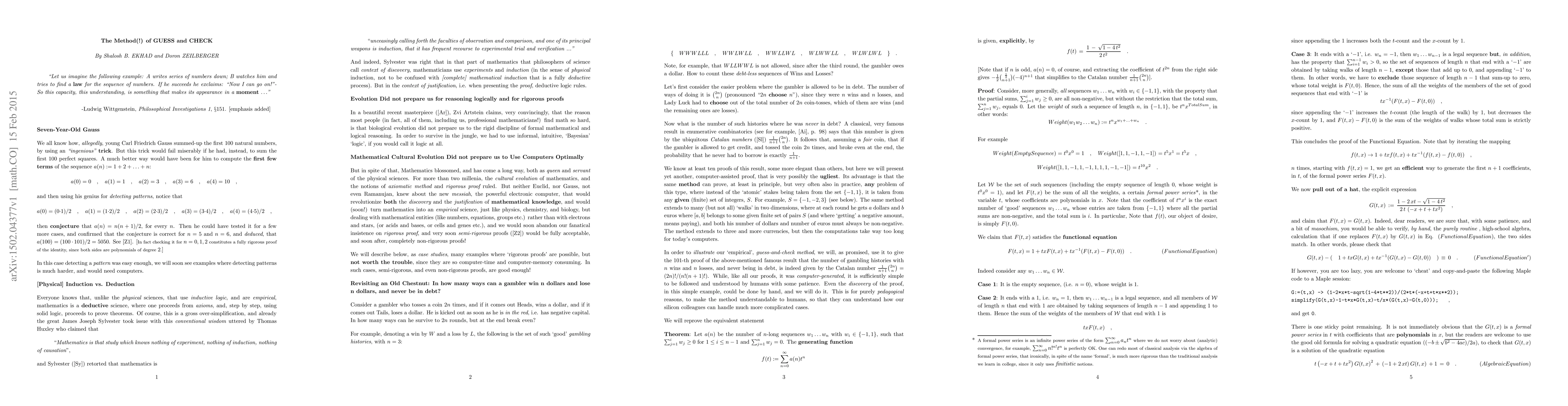 The problems of enumerating lattice walks, with an arbitrary finite set of allowed steps, both in one and two dimensions, where one must always stay in the non-negative half-line and quarter-plane respectively, are used, as case studies, to illustrate the `naive' methodology of guess-and-check, where rigorous proofs are possible, but not worth the trouble. We argue that this is a metaphor for future math.