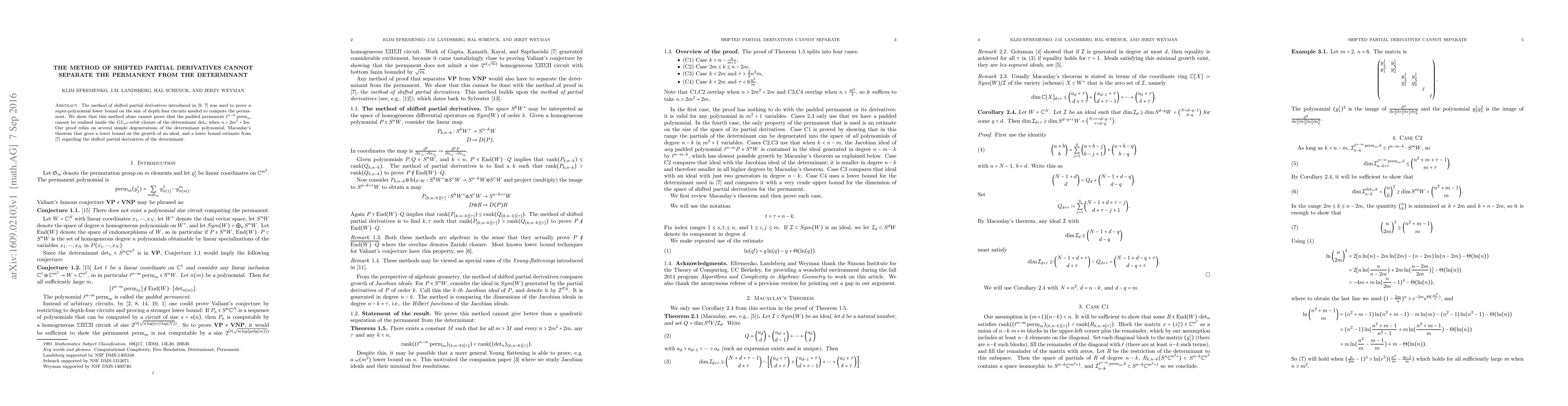 The method of shifted partial derivatives was used to prove a super-polynomial lower bound on the size of depth four circuits needed to compute the permanent. We show that this method alone cannot prove that the padded permanent $\ell^{n-m} perm_m$ cannot be realized inside the $GL_{n^2}$-orbit closure of the determinant $ det_n$ when $n>2m^2+2m$. Our proof relies on several simple degenerations of the determinant polynomial, Macaulay's theorem that gives a lower bound on the growth of an ideal, and a lower bound estimate from Gupta et. al. regarding the shifted partial derivatives of the determinant.