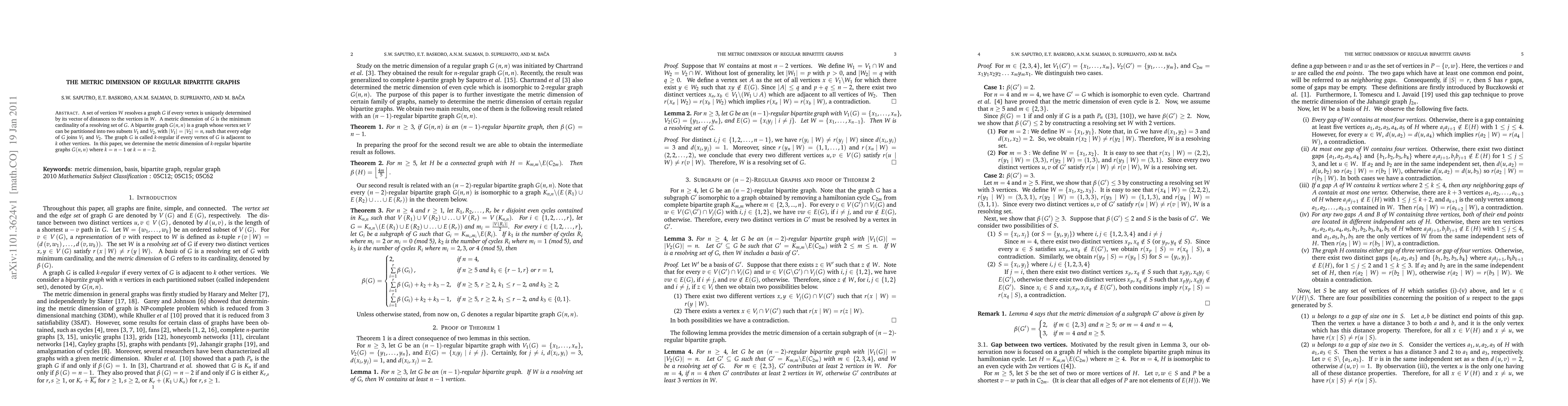 A set of vertices $W$ resolves a graph $G$ if every vertex is uniquely determined by its vector of distances to the vertices in $W$. A metric dimension of $G$ is the minimum cardinality of a resolving set of $G$. A bipartite graph G(n,n) is a graph whose vertex set $V$ can be partitioned into two subsets $V_1$ and $V_2,$ with $|V_1|=|V_2|=n,$ such that every edge of $G$ joins $V_1$ and $V_2$. The graph $G$ is called $k$-regular if every vertex of $G$ is adjacent to $k$ other vertices. In this paper, we determine the metric dimension of $k$-regular bipartite graphs G(n,n) where $k=n-1$ or $k=n-2$.