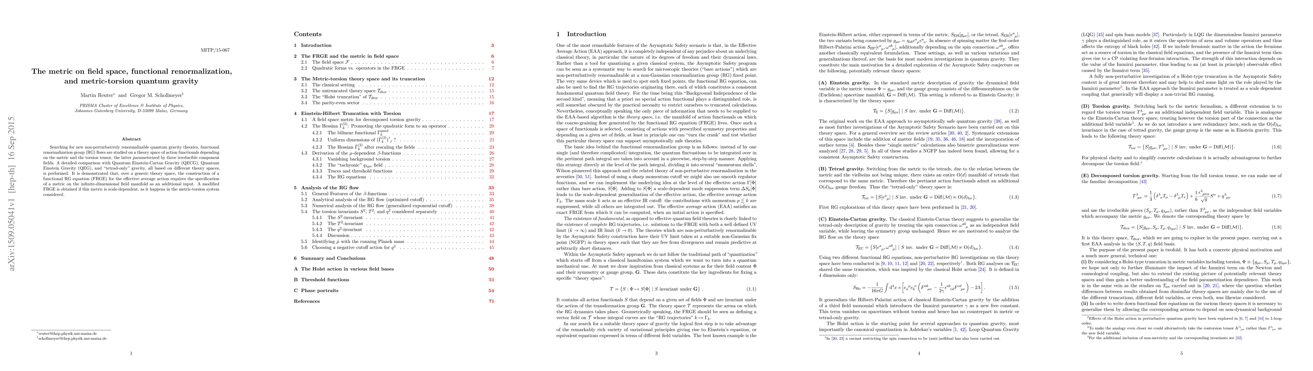 Searching for new non-perturbatively renormalizable quantum gravity theories, functional renormalization group (RG) flows are studied on a theory space of action functionals depending on the metric and the torsion tensor, the latter parameterized by three irreducible component fields. A detailed comparison with Quantum Einstein-Cartan Gravity (QECG), Quantum Einstein Gravity (QEG), and "tetrad-only" gravity, all based on different theory spaces, is performed. It is demonstrated that, over a generic theory space, the construction of a functional RG equation (FRGE) for the effective average action requires the specification of a metric on the infinite-dimensional field manifold as an additional input. A modified FRGE is obtained if this metric is scale-dependent, as it happens in the metric-torsion system considered.