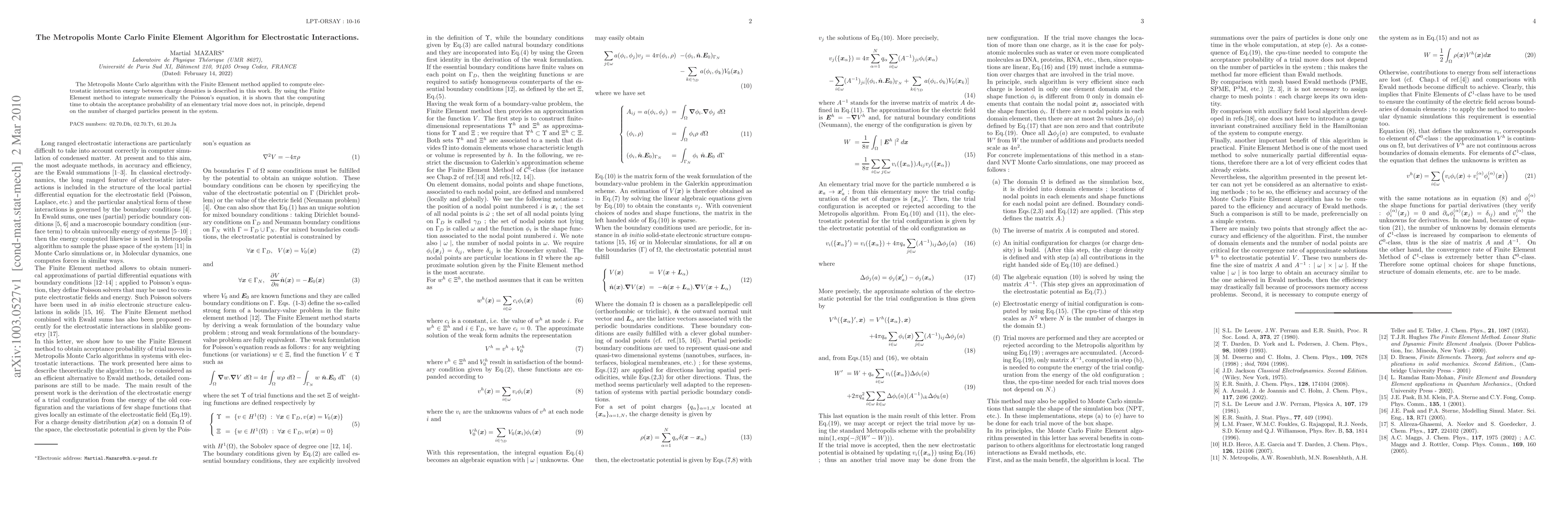 This paper introduces a Monte Carlo algorithm that uses the Finite Element method to compute electrostatic interaction energy between charge densities, showing that computing time is independent of the number of charged particles.
