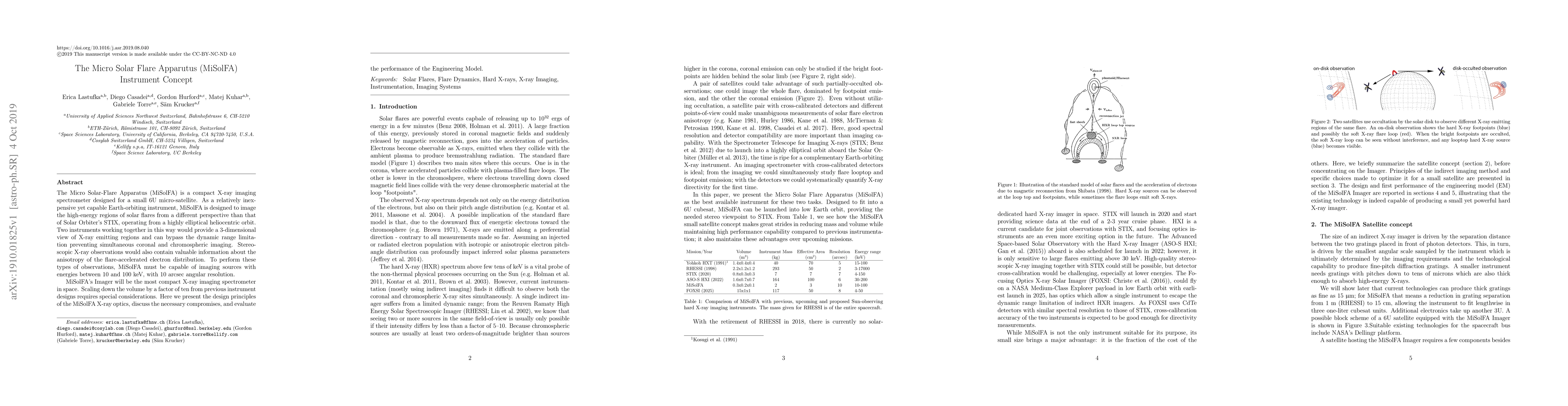 The MiSolFA instrument is a compact X-ray imaging spectrometer for a small micro-satellite, designed to provide a 3-dimensional view of solar flares by imaging high-energy regions from a different perspective than existing instruments. The design focuses on achieving 10-100 keV energy imaging with 10 arcsec angular resolution while scaling down the instrument's volume significantly.