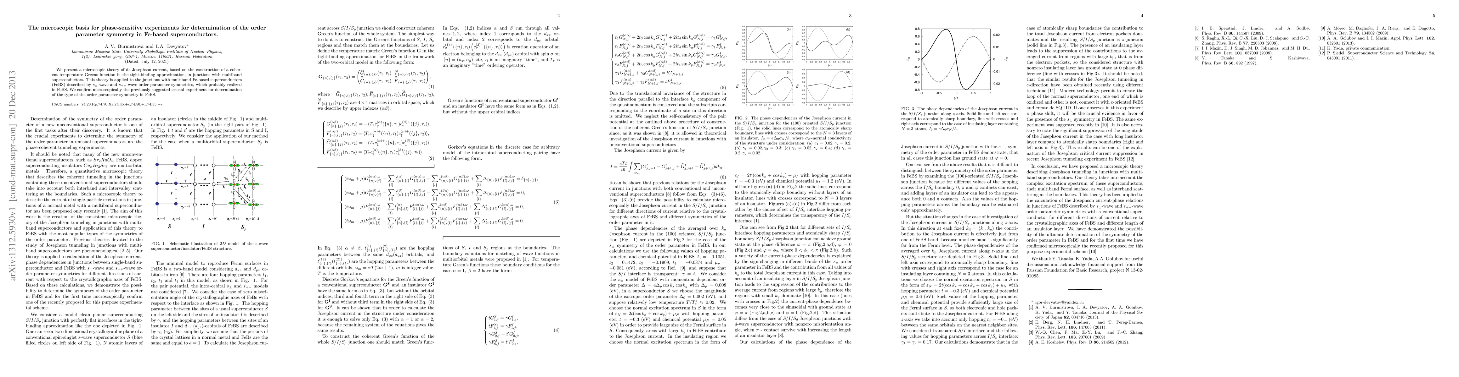 We present a microscopic theory of dc Josephson current, based on the construction of a coherent temperature Green function in the tight-binding approximation, in junctions with multiband superconductors. This theory is applied to the junctions with multiband Fe-based superconductors (FeBS) described by anisotropic s-wave order parameter symmetries, which probably realized in FeBS. We confirm microscopically the previously suggested crucial experiment for determination of the type of the order parameter symmetry in FeBS.
