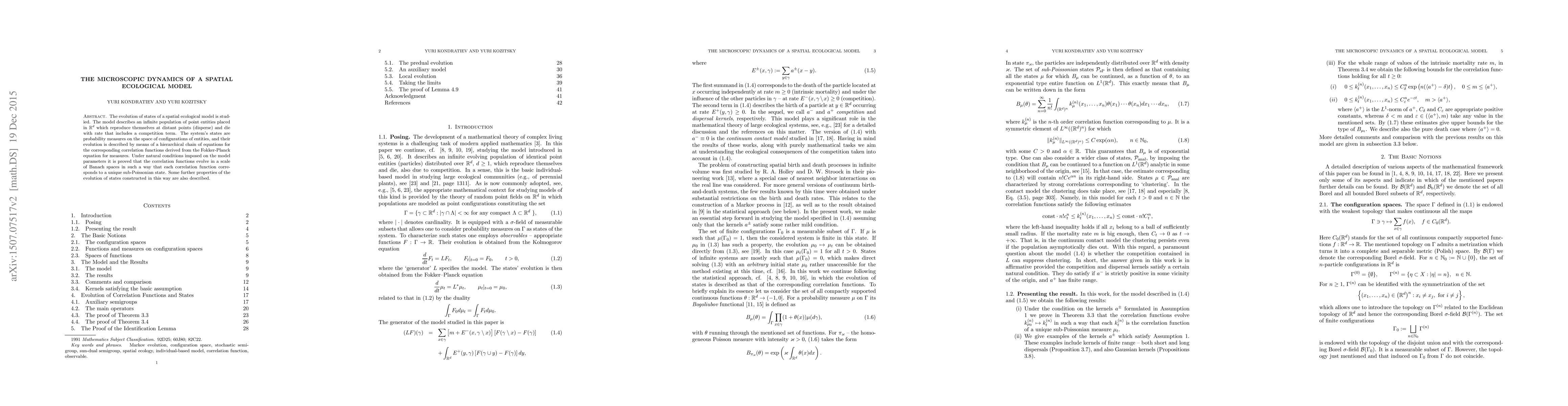 This research paper investigates the microscopic dynamics of a spatial ecological model, proving that under certain conditions, correlation functions evolve to represent unique sub-Poissonian states. It employs a hierarchical chain of equations for correlation functions derived from the Fokker-Planck equation.