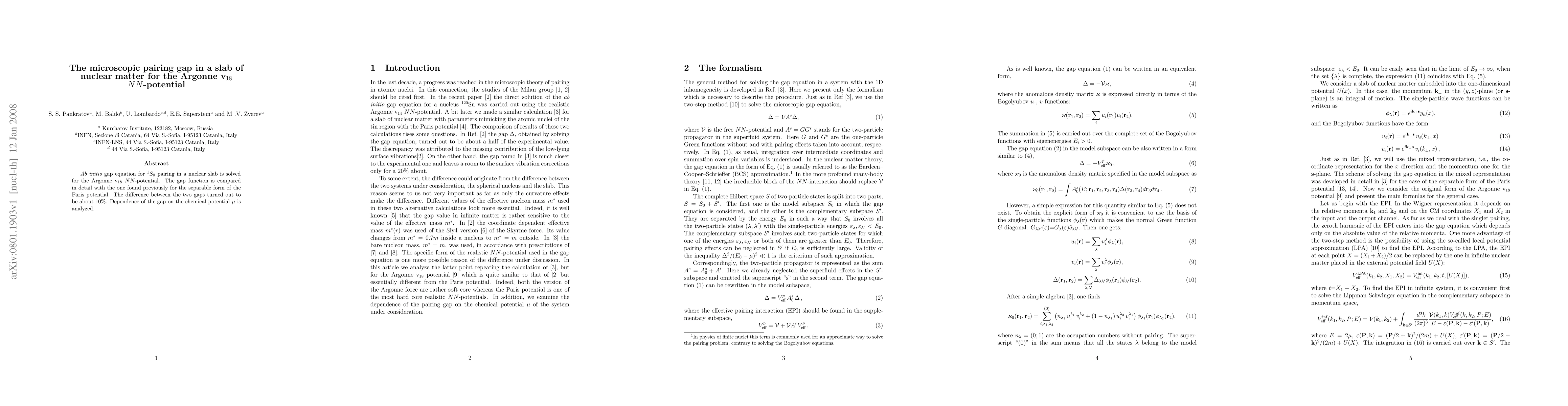 Ab initio gap equation for ^1S_0 pairing in a nuclear slab is solved for the Argonne v18 NN-potential. The gap function is compared in detail with the one found previously for the separable form of the Paris potential. The difference between the two gaps turned out to be about 10%. Dependence of the gap on the chemical potential mu is analyzed.