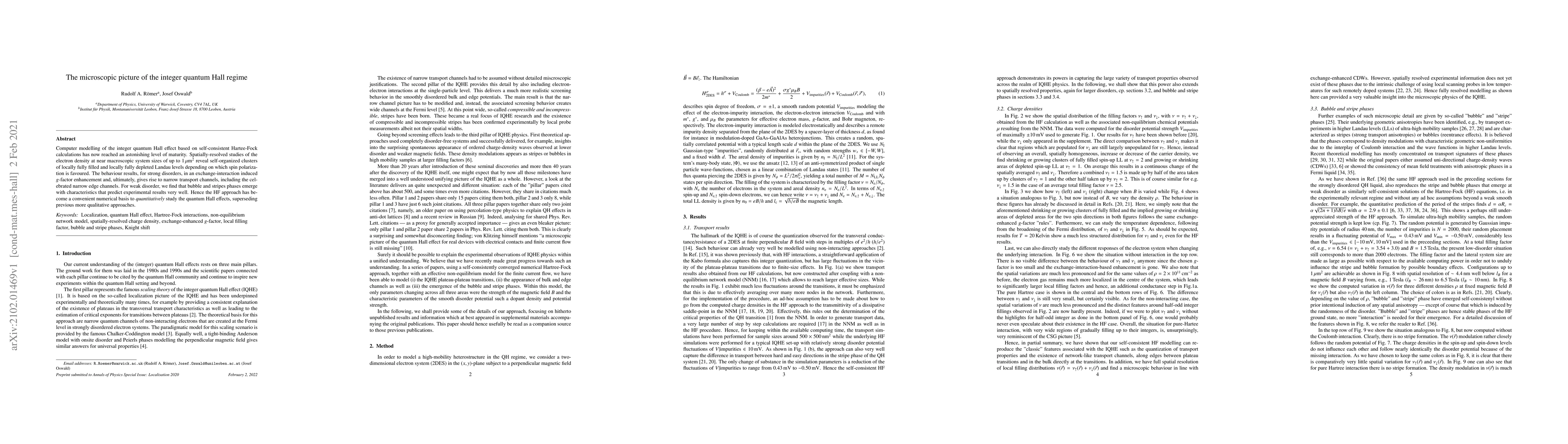 Computer modelling of the integer quantum Hall effect based on self-consistent Hartee-Fock calculations has now reached an astonishing level of maturity. Spatially-resolved studies of the electron density at near macroscopic system sizes of up to $\sim 1\ \mu m^2$ reveal self-organized clusters of locally fully filled and locally fully depleted Landau levels depending on which spin polarization is favoured. The behaviour results, for strong disorders, in an exchange-interaction induced $g$-factor enhancement and, ultimately, gives rise to narrow transport channels, including the celebrated narrow edge channels. For weak disorder, we find that bubble and stripes phases emerge with characteristics that predict experimental results very well. Hence the HF approach has become a convenient numerical basis to \emph{quantitatively} study the quantum Hall effects, superseding previous more qualitative approaches.