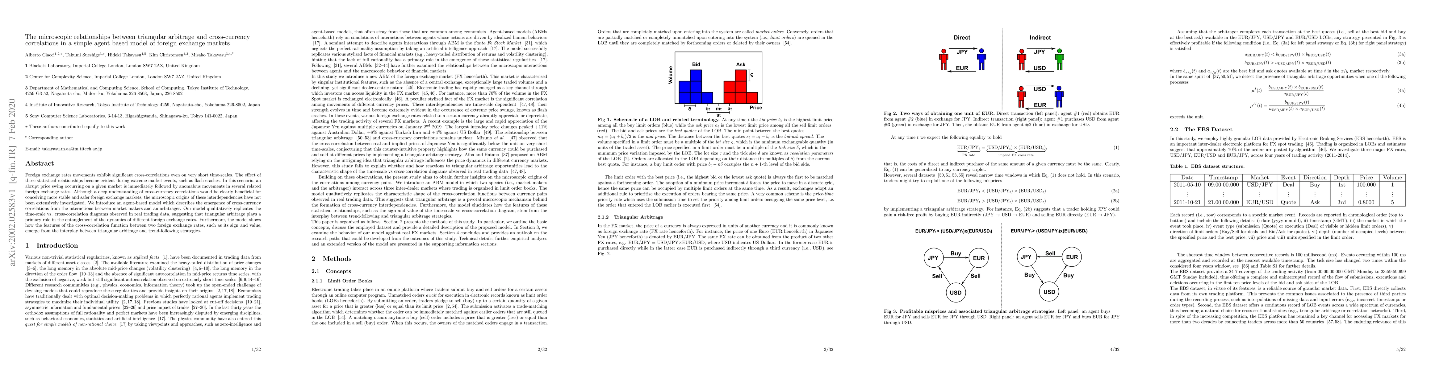 This paper investigates the microscopic origins of cross-currency correlations in foreign exchange markets using an agent-based model. It finds that triangular arbitrage significantly influences the interdependencies between different currency pairs, especially during extreme market events.