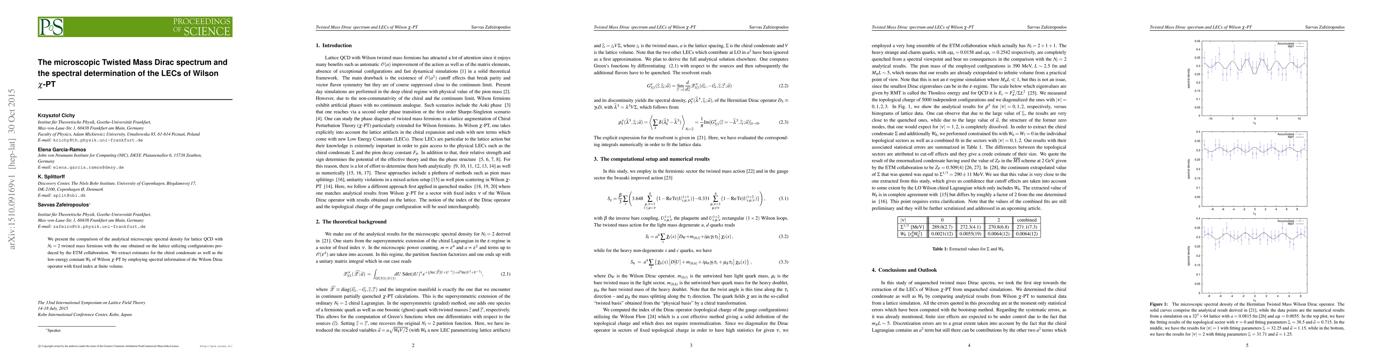 We present the comparison of the analytical microscopic spectral density for lattice QCD with $N_{\rm f}=2$ twisted mass fermions with the one obtained on the lattice utilizing configurations produced by the ETM collaboration. We extract estimates for the chiral condensate as well as the low-energy constant $W_8$ of Wilson $\chi$-PT by employing spectral information of the Wilson Dirac operator with fixed index at finite volume.