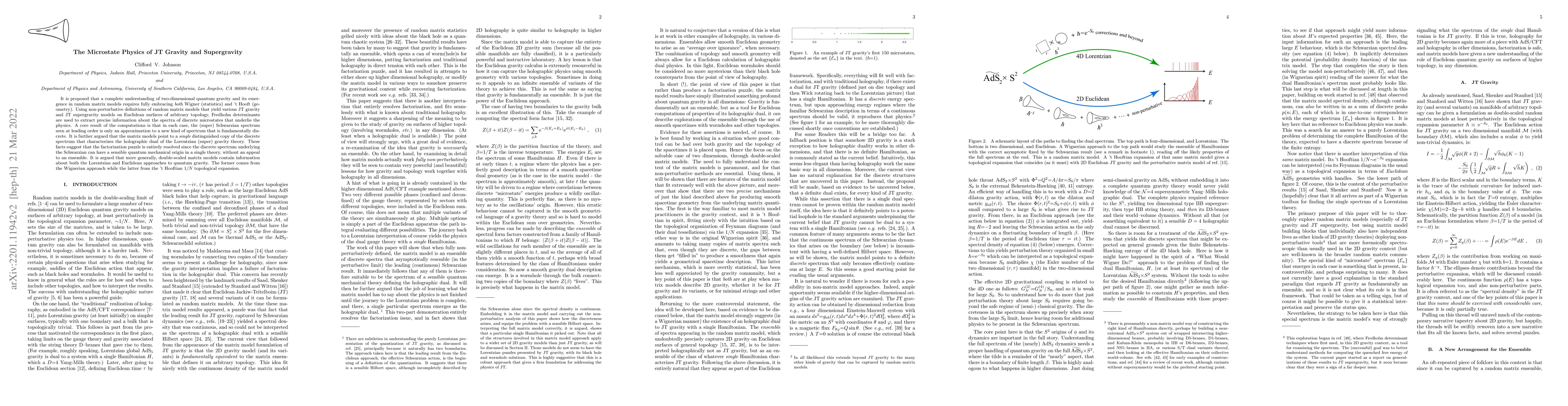 This paper explores the microstate physics of two-dimensional JT gravity and supergravity using random matrix models, revealing that the Schwarzian spectrum is an approximation to a fundamentally discrete spectrum. It argues that these matrix models provide a unified framework for understanding both Lorentzian and Euclidean quantum gravity.