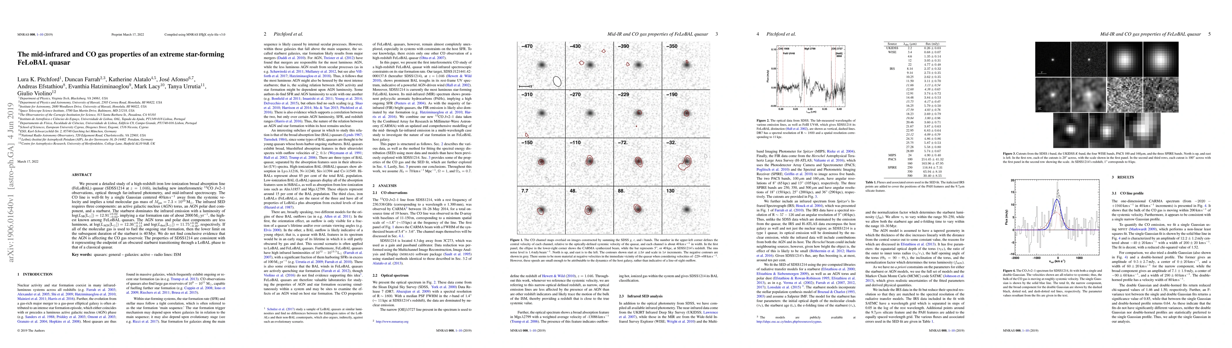 We present a detailed study of a high-redshift iron low-ionization broad absorption line (FeLoBAL) quasar (SDSS1214 at $z = 1.046$), including new interferometric $^{12}$CO $J$=2-1 observations, optical through far-infrared photometry, and mid-infrared spectroscopy. The CO line is well-fit by a single Gaussian centered 40 kms$^{-1}$ away from the systemic velocity and implies a total molecular gas mass of $M_\textrm{gas} = 7.3 \times 10^{10} \textrm{M}_\odot$. The infrared SED requires three components: an active galactic nucleus (AGN) torus, an AGN polar dust component, and a starburst. The starburst dominates the infrared emission with a luminosity of log($L_\textrm{SB}[\textrm{L}_\odot]) = 12.91^{+0.02}_{-0.02}$, implying a star formation rate of about 2000 $\textrm{M}_{\odot}$yr$^{-1}$, the highest known among FeLoBAL quasars. The AGN torus and polar dust components are less luminous, at log($L_\textrm{AGN}[\textrm{L}_\odot]) = 12.36^{+0.14}_{-0.15}$ and log($L_\textrm{dust}[\textrm{L}_\odot]) = 11.75^{+0.26}_{-0.46}$, respectively. If all of the molecular gas is used to fuel the ongoing star formation, then the lower limit on the subsequent duration of the starburst is 40 Myr. We do not find conclusive evidence that the AGN is affecting the CO gas reservoir. The properties of SDSS1214 are consistent with it representing the endpoint of an obscured starburst transitioning through a LoBAL phase to that of a classical quasar.
