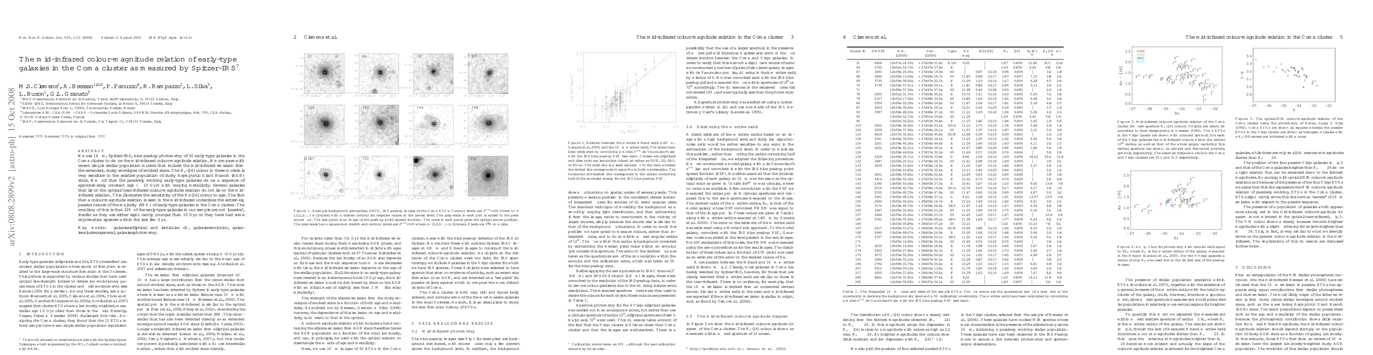 The paper presents a detailed analysis of mid-infrared colour-magnitude relations for early-type galaxies in the Coma cluster, utilizing Spitzer-IRS data and comparing with stellar population models to disentangle age and metallicity effects.