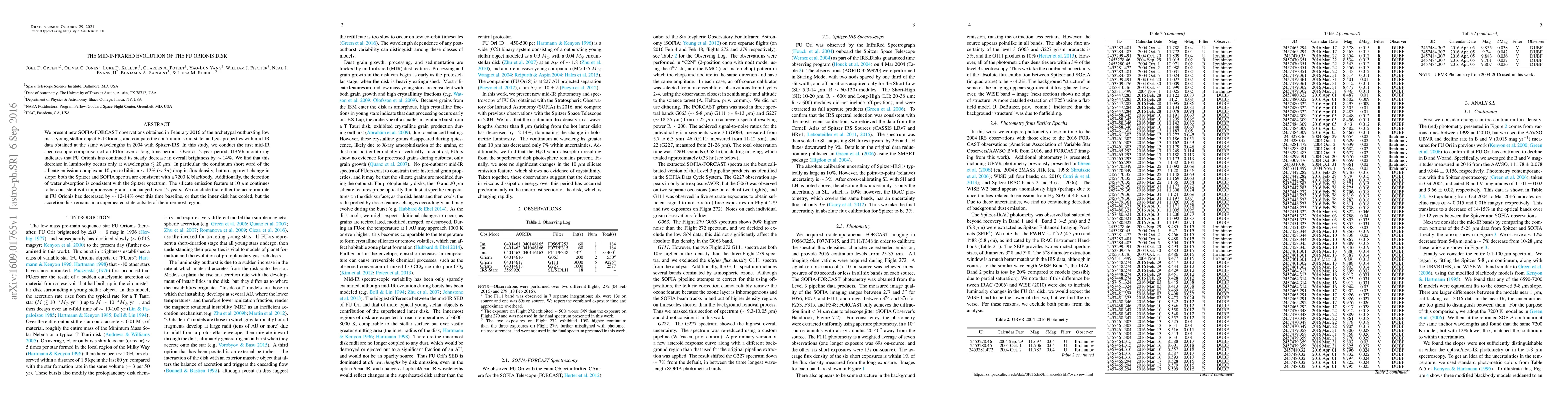 We present new SOFIA-FORCAST observations obtained in Feburary 2016 of the archetypal outbursting low mass young stellar object FU Orionis, and compare the continuum, solid state, and gas properties with mid-IR data obtained at the same wavelengths in 2004 with Spitzer-IRS. In this study, we conduct the first mid-IR spectroscopic comparison of an FUor over a long time period. Over a 12 year period, UBVR monitoring indicates that FU Orionis has continued its steady decrease in overall brightness by ~ 14%. We find that this decrease in luminosity occurs only at wavelengths < 20 microns. In particular, the continuum short ward of the silicate emission complex at 10 microns exhibits a ~ 12% (~ 3 sigma) drop in flux density, but no apparent change in slope; both the Spitzer and SOFIA spectra are consistent with a 7200 K blackbody. Additionally, the detection of water absorption is consistent with the Spitzer spectrum. The silicate emission feature at 10 microns continues to be consistent with unprocessed grains, unchanged over 12 years. We conclude that either the accretion rate in FU Orionis has decreased by ~ 12-14% over this time baseline, or that the inner disk has cooled, but the accretion disk remains in a superheated state outside of the innermost region.
