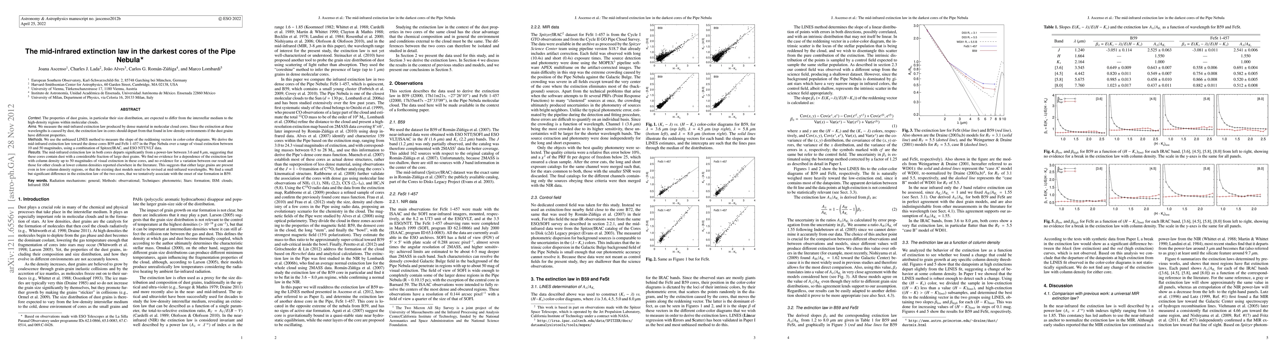 This study measures the mid-infrared extinction law in dense cores B59 and FeSt 1-457 of the Pipe Nebula, finding significant deviation from a power-law, indicating large dust grains. No correlation with column density is observed, suggesting large grains may be ubiquitous or existing dust models need revision.