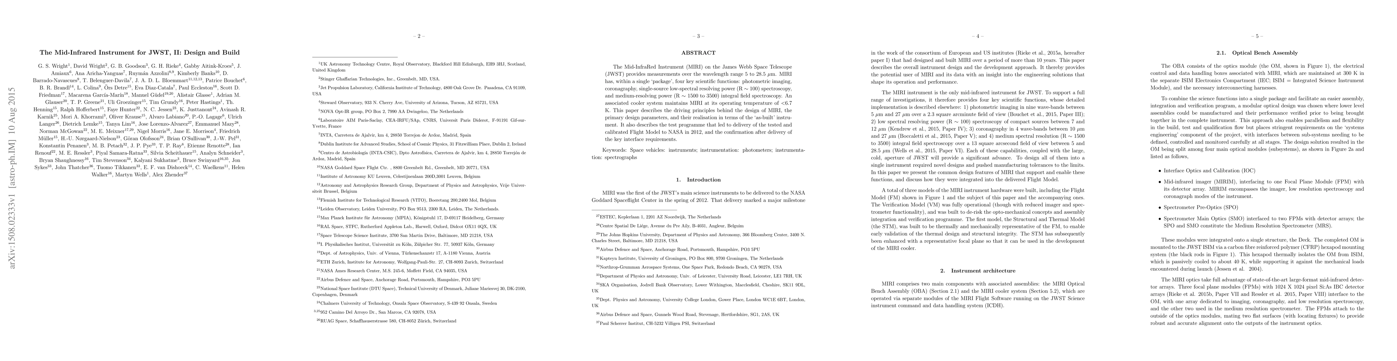 The Mid-Infrared Instrument (MIRI) on the James Webb Space Telescope offers four scientific functions across 5-28.5 micron wavelengths, with a built-in cooler system to maintain < 6.7 K temperatures.