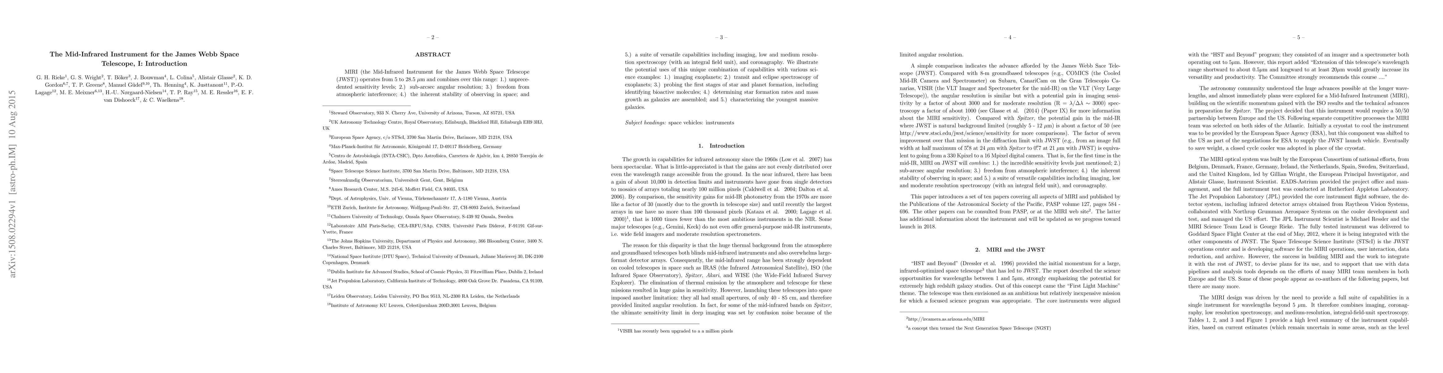 MIRI (the Mid-Infrared Instrument for the James Webb Space Telescope (JWST)) operates from 5 to 28.5 microns and combines over this range: 1.) unprecedented sensitivity levels; 2.) sub-arcsec angular resolution; 3.) freedom from atmospheric interference; 4.) the inherent stability of observing in space; and 5.) a suite of versatile capabilities including imaging, low and medium resolution spectroscopy (with an integral field unit), and coronagraphy. We illustrate the potential uses of this unique combination of capabilities with various science examples: 1.) imaging exoplanets; 2.) transit and eclipse spectroscopy of exoplanets; 3.) probing the first stages of star and planet formation, including identifying bioactive molecules; 4.) determining star formation rates and mass growth as galaxies are assembled; and 5.) characterizing the youngest massive galaxies. This paper is the introduction to a series of ten covering all aspects of the instrument.
