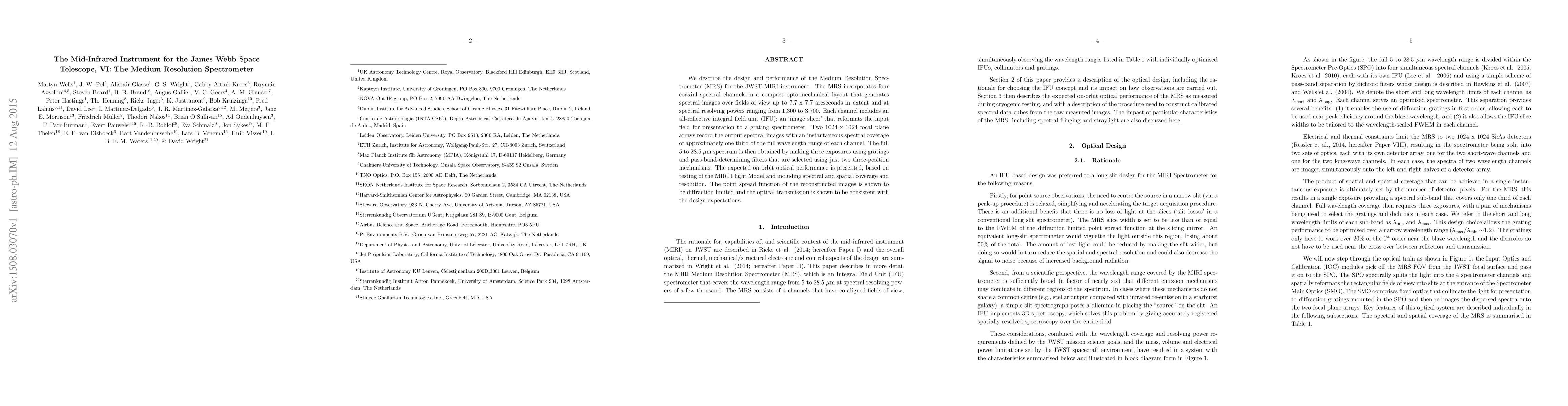 We describe the design and performance of the Medium Resolution Spectrometer (MRS) for the JWST-MIRI instrument. The MRS incorporates four coaxial spectral channels in a compact opto-mechanical layout that generates spectral images over fields of view up to 7.7 X 7.7 arcseconds in extent and at spectral resolving powers ranging from 1,300 to 3,700. Each channel includes an all-reflective integral field unit (IFU): an 'image slicer' that reformats the input field for presentation to a grating spectrometer. Two 1024 X 1024 focal plane arrays record the output spectral images with an instantaneous spectral coverage of approximately one third of the full wavelength range of each channel. The full 5 to 28.5 micron spectrum is then obtained by making three exposures using gratings and pass-band-determining filters that are selected using just two three-position mechanisms. The expected on-orbit optical performance is presented, based on testing of the MIRI Flight Model and including spectral and spatial coverage and resolution. The point spread function of the reconstructed images is shown to be diffraction limited and the optical transmission is shown to be consistent with the design expectations.