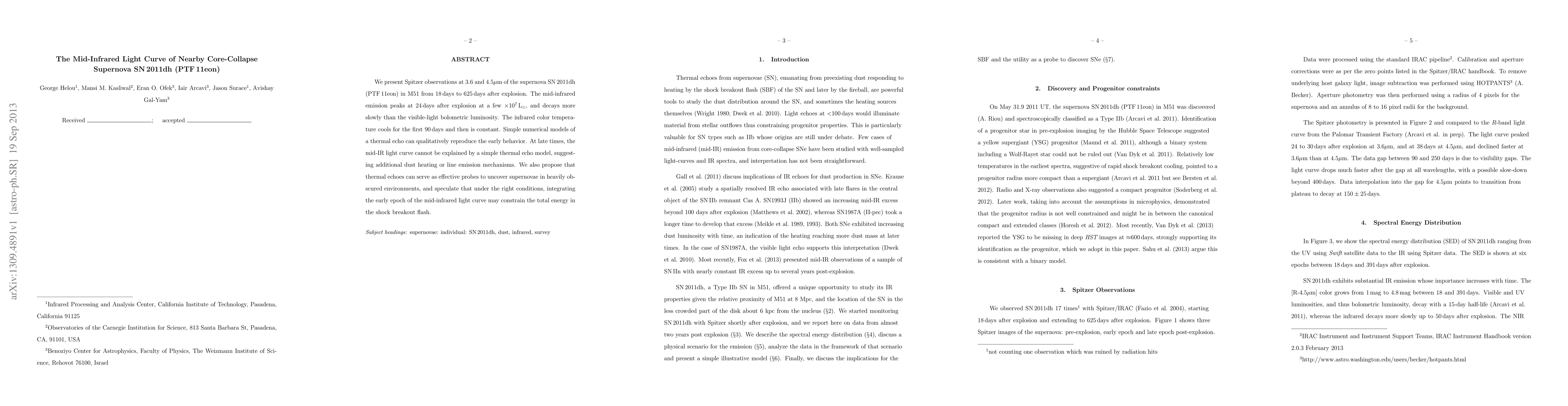 We present Spitzer observations at 3.6 and 4.5um of the supernova SN2011dh (PTF11eon) in M51 from 18 days to 625 days after explosion. The mid-infrared emission peaks at 24 days after explosion at a few times 10^7 Lsun, and decays more slowly than the visible-light bolometric luminosity. The infrared color temperature cools for the first 90 days and then is constant. Simple numerical models of a thermal echo can qualitatively reproduce the early behavior. At late times, the mid-IR light curve cannot be explained by a simple thermal echo model, suggesting additional dust heating or line emission mechanisms. We also propose that thermal echoes can serve as effective probes to uncover supernovae in heavily obscured environments, and speculate that under the right conditions, integrating the early epoch of the mid-infrared light curve may constrain the total energy in the shock breakout flash.
