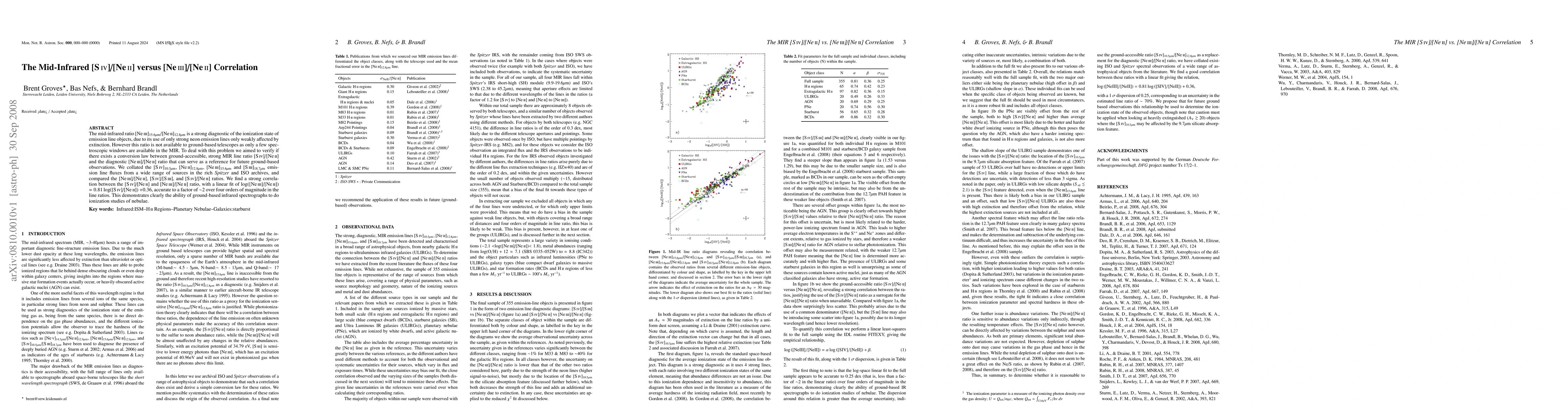 The mid-infrared ratio [NeIII]15.6mum/[NeII]12.8mum is a strong diagnostic of the ionization state of emission line objects, due to its use of only strong neon emission lines only weakly affected by extinction. However this ratio is not available to ground-based telescopes as only a few spectroscopic windows are available in the MIR. To deal with this problem we aimed to verify if there exists a conversion law between ground-accessible, strong MIR line ratio [SIV]/[NeII] and the diagnostic [NeIII]/[NeII] ratio that can serve as a reference for future ground-based observations. We collated the [SIV]10.5mum, [NeII]12.8mum, [NeIII]15.6\mum and [SIII]18.7mum emission line fluxes from a wide range of sources in the rich Spitzer and ISO archives, and compared the [NeIII]/[NeII], [SIV]/[SIII], and [SIV]/[NeII] ratios. We find a strong correlation between the [SIV]/[NeII] and [\neiii]/[\neii] ratio, with a linear fit of log([NeIII]/[NeII]) = 0.81log([SIV]/[NeII])+0.36, accurate to a factor of ~2 over four orders of magnitude in the line ratios. This demonstrates clearly the ability of ground-based infrared spectrographs to do ionization studies of nebulae.