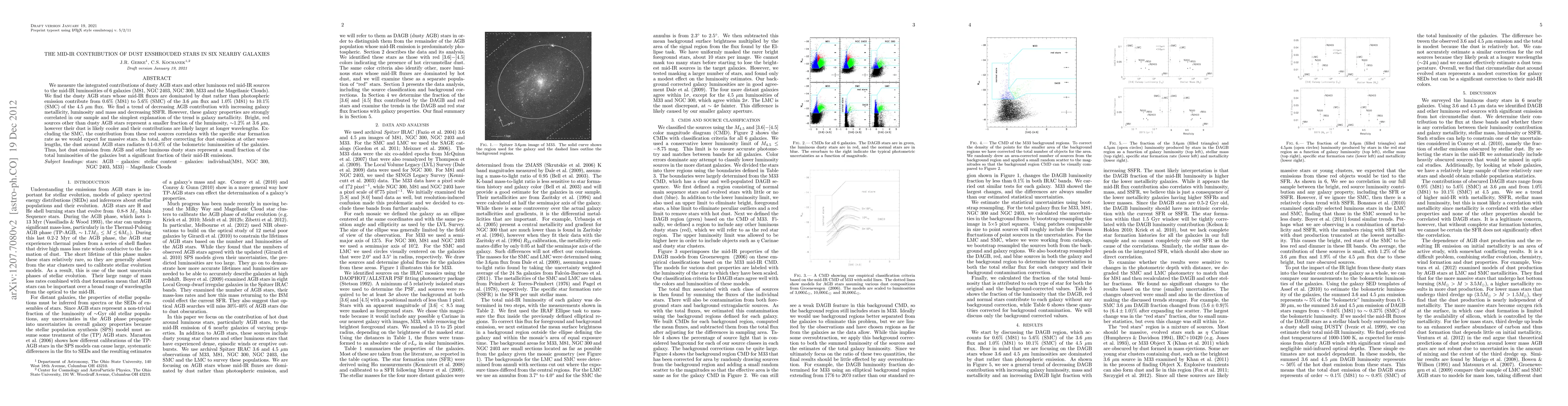 This study quantifies the mid-IR contributions from dusty Asymptotic Giant Branch (AGB) stars and other luminous red sources in six nearby galaxies, finding that AGB stars contribute 0.6-5.6% to mid-IR fluxes at 3.6 microns and 1.0-10.1% at 4.5 microns. The study reveals a trend of decreasing AGB contribution with higher galaxy metallicity, luminosity, and mass.