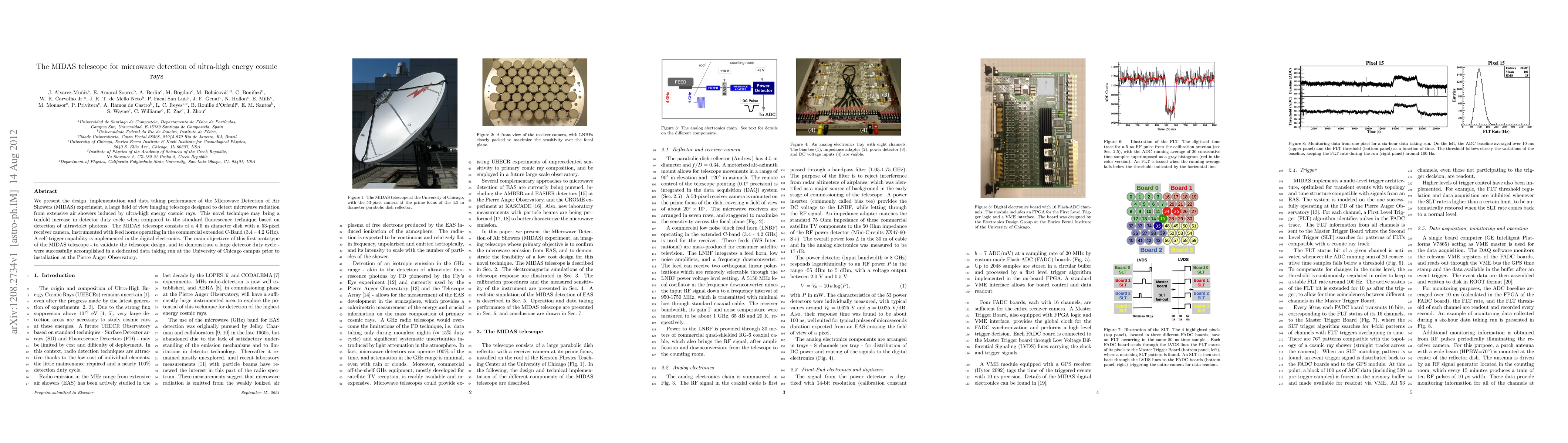 The MIDAS telescope, designed for microwave detection of ultra-high energy cosmic rays, successfully validated its novel imaging technique and demonstrated a tenfold increase in detector duty cycle compared to traditional fluorescence methods. The prototype achieved these objectives during data collection at the University of Chicago before its deployment at the Pierre Auger Observatory.