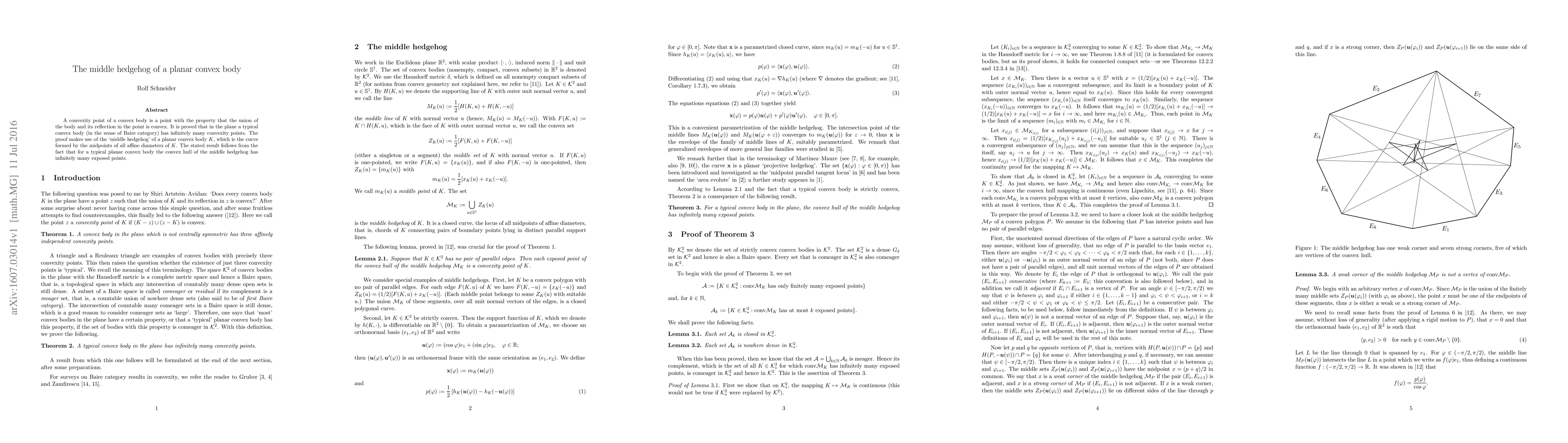Summary: The paper proves that a typical planar convex body has infinitely many convexity points, utilizing the concept of the "middle hedgehog," which is a curve formed by the midpoints of all affine diameters of the convex body. The result is derived from the property that the convex hull of the middle hedgehog typically has infinitely many exposed points.