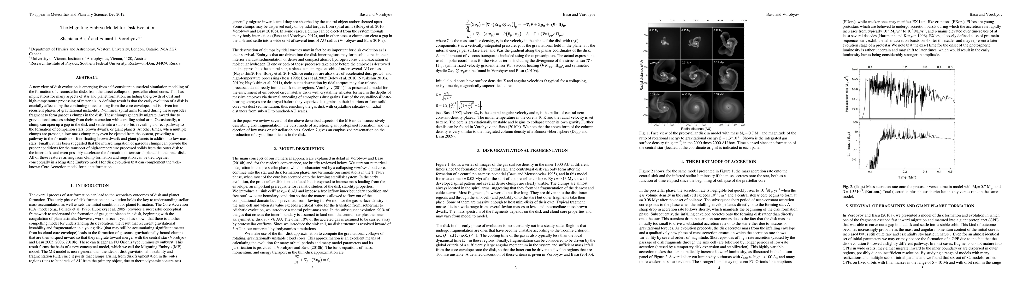 A new view of disk evolution is emerging from self-consistent numerical simulation modeling of the formation of circumstellar disks from the direct collapse of prestellar cloud cores. This has implications for many aspects of star and planet formation, including the growth of dust and high-temperature processing of materials. A defining result is that the early evolution of a disk is crucially affected by the continuing mass loading from the core envelope, and is driven into recurrent phases of gravitational instability. Nonlinear spiral arms formed during these episodes fragment to form gaseous clumps in the disk. These clumps generally migrate inward due to gravitational torques arising from their interaction with a trailing spiral arm. Occasionally, a clump can open up a gap in the disk and settle into a stable orbit, revealing a direct pathway to the formation of companion stars, brown dwarfs, or giant planets. At other times, when multiple clumps are present, a low mass clump may even be ejected from the system, providing a pathway to the formation of free-floating brown dwarfs and giant planets in addition to low mass stars. Finally, it has been suggested that the inward migration of gaseous clumps can provide the proper conditions for the transport of high-temperature processed solids from the outer disk to the inner disk, and even possibly accelerate the formation of terrestrial planets in the inner disk. All of these features arising from clump formation and migration can be tied together conceptually in a Migrating Embryo model for disk evolution that can complement the well-known Core Accretion model for planet formation.