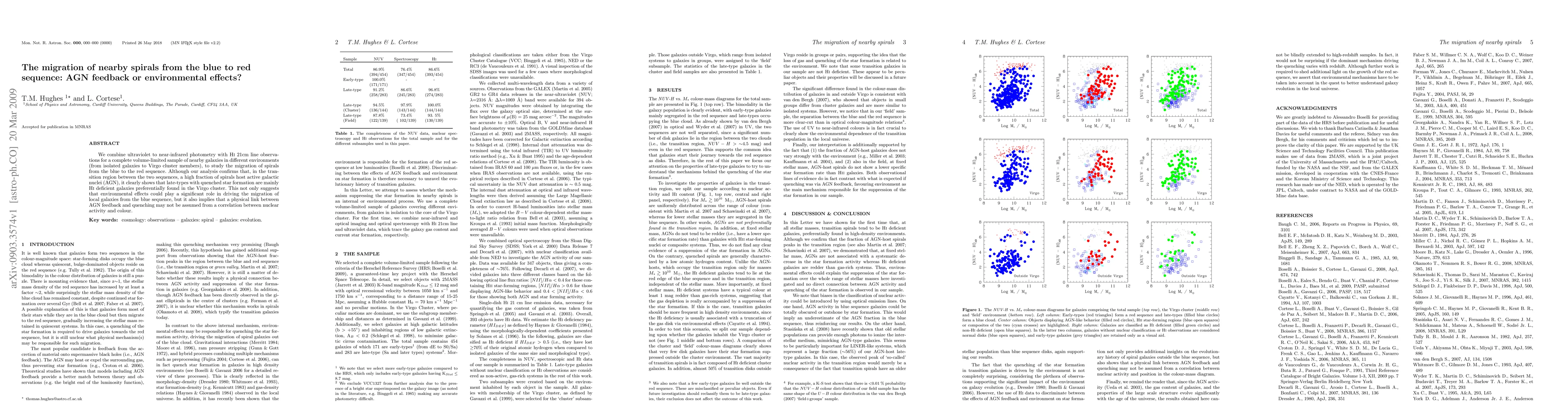 We combine ultraviolet to near-infrared photometry with HI 21cm line observations for a complete volume-limited sample of nearby galaxies in different environments (from isolated galaxies to Virgo cluster members), to study the migration of spirals from the blue to the red sequence. Although our analysis confirms that, in the transition region between the two sequences, a high fraction of spirals host active galactic nuclei (AGN), it clearly shows that late-types with quenched star formation are mainly HI deficient galaxies preferentially found in the Virgo cluster. This not only suggests that environmental effects could play a significant role in driving the migration of local galaxies from the blue sequence, but it also implies that a physical link between AGN feedback and quenching may not be assumed from a correlation between nuclear activity and colour.