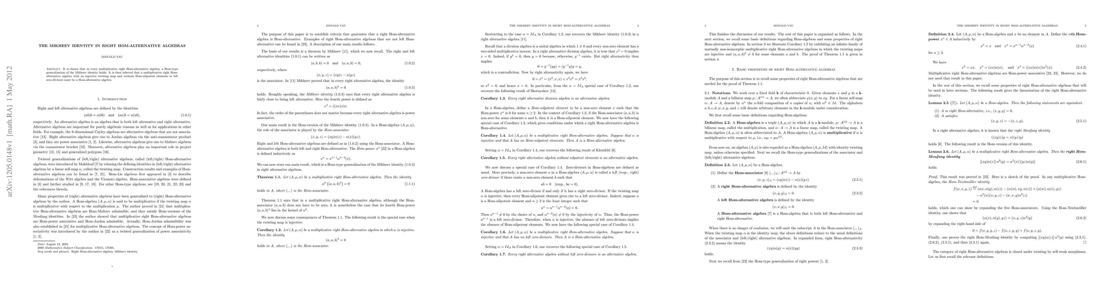 This paper demonstrates that a generalized Mikheev identity applies in multiplicative right Hom-alternative algebras. It concludes that such algebras, with an injective twisting map and lacking Hom-nilpotent elements or left zero-divisors, are necessarily Hom-alternative algebras.