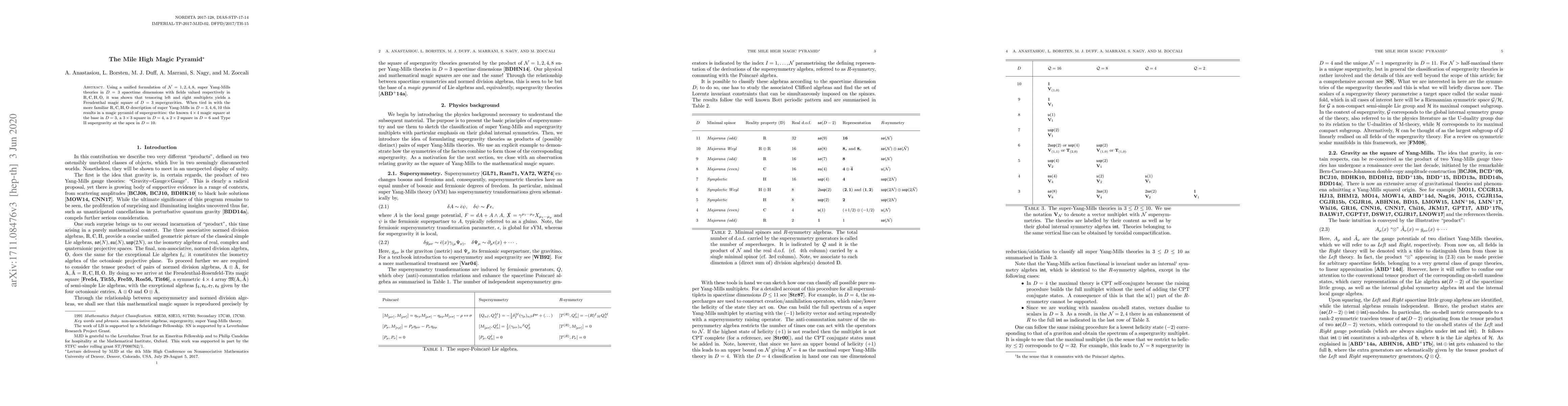 This paper explores a unified framework for $\mathcal{N} = 1, 2, 4, 8$ super Yang-Mills theories in $D = 3$ dimensions, revealing a Freudenthal magic square of $D = 3$ supergravities. Extending this to higher dimensions forms a "magic pyramid" with known magic squares at the base and Type II supergravity at the apex.