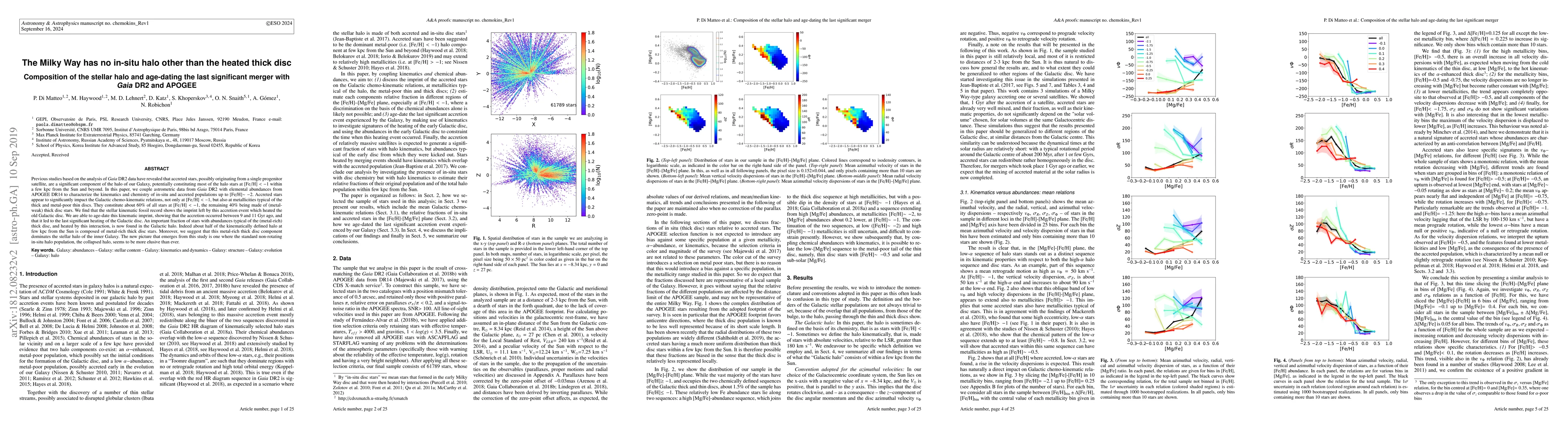 This paper reveals that the Milky Way's stellar halo is largely composed of accreted stars from a single progenitor satellite, with only a minor in-situ component. The last significant merger occurred 9-11 Gyr ago, heating the thick disc and contributing to the current Galactic halo.