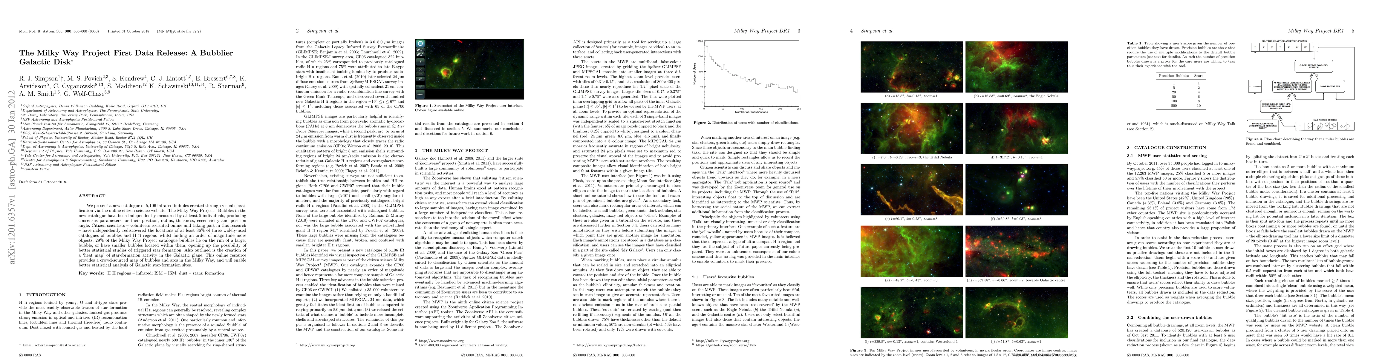 The Milky Way Project's first data release catalogs 5,106 infrared bubbles identified by citizen scientists, offering consensus parameters for their characteristics. This crowd-sourced resource enables enhanced statistical studies of star formation and includes a 'heat map' of star-formation activity in the Galactic plane.