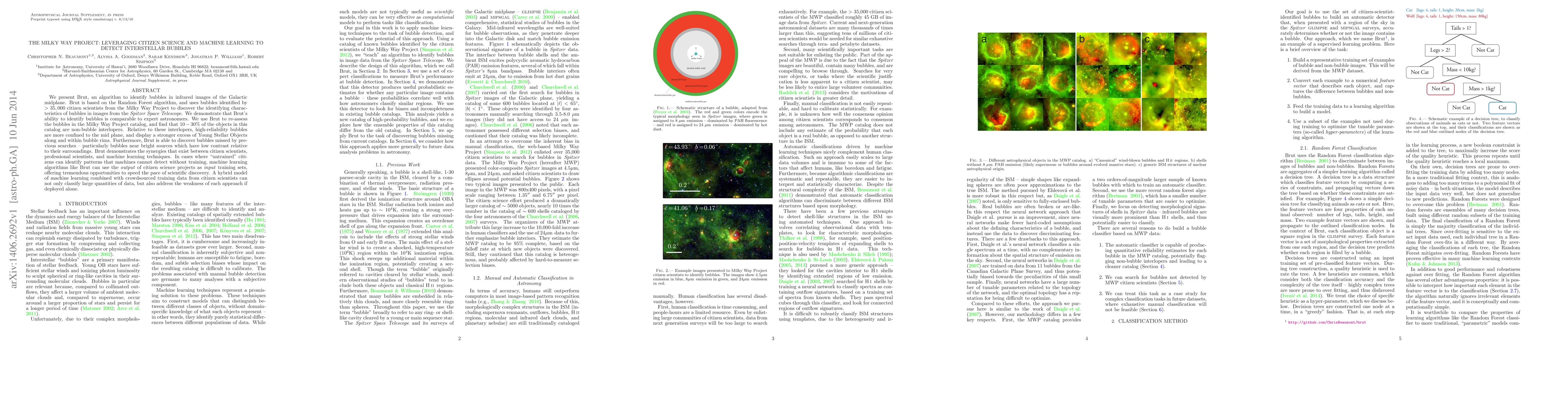 The Milky Way Project utilizes Brut, a Random Forest algorithm trained by citizen scientists' identifications, to detect interstellar bubbles in infrared images. This hybrid model effectively identifies bubbles, reveals that 10-30% of cataloged objects are misclassified, and discovers new bubbles, showcasing the synergy between citizen science and machine learning.