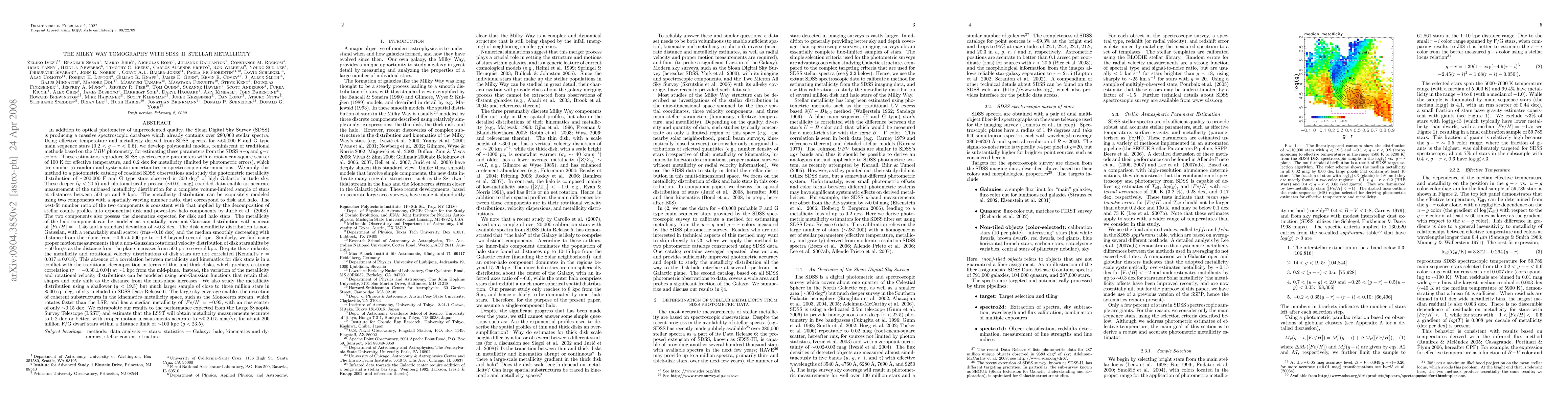 Using effective temperature and metallicity derived from SDSS spectra for