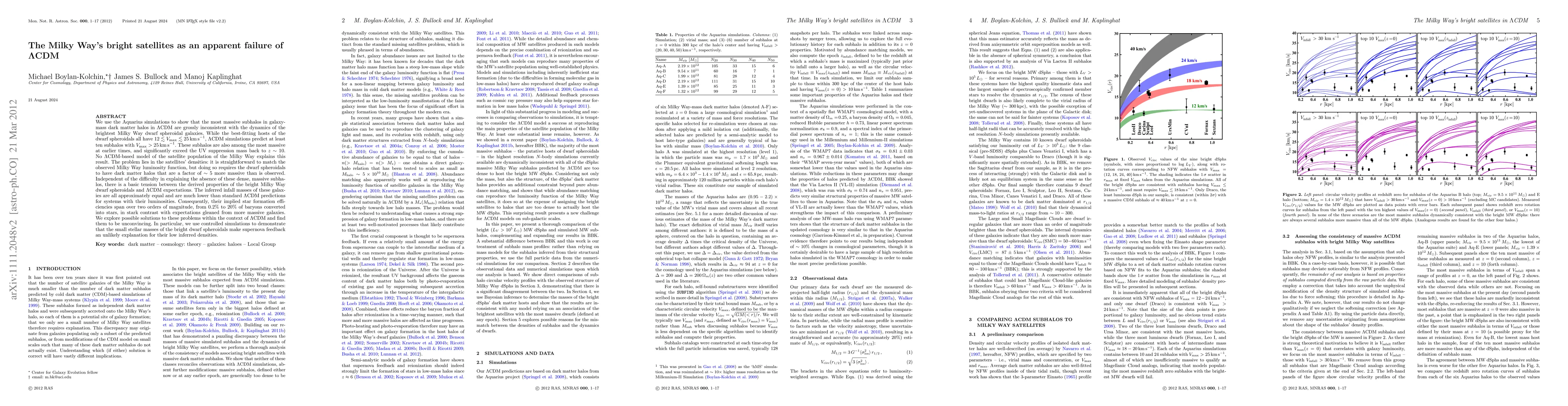 The paper presents a detailed analysis using high-resolution N-body simulations (Aquarius project) to compare the dynamics of Milky Way satellites with the properties of subhalos in LCDM simulations.