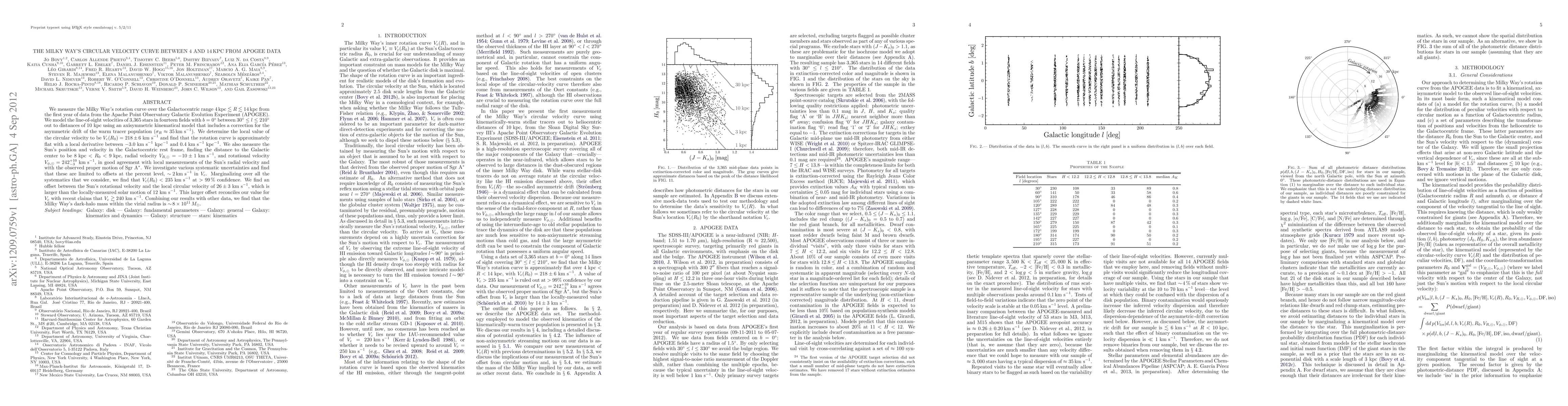 This paper measures the Milky Way's rotation curve from 4 to 14 kpc using APOGEE data, finding a flat rotation curve with a local circular velocity of 218 ± 6 km/s. It also determines the Sun's position and velocity, reconciling a larger offset in the Sun's rotational velocity with higher local circular velocity claims.