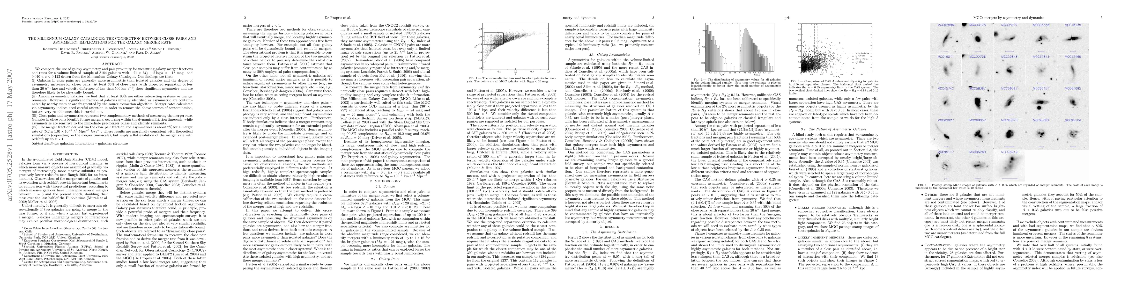 We compare the use of galaxy asymmetry and pair proximity for measuring galaxy merger fractions and rates for a volume limited sample of 3184 galaxies with -21 < M(B) -5 log h < -18 mag. and 0.010 < z < 0.123 drawn from the Millennium Galaxy Catalogue. Our findings are that: (i) Galaxies in close pairs are generally more asymmetric than isolated galaxies and the degree of asymmetry increases for closer pairs. At least 35% of close pairs (with projected separation of less than 20 h^{-1} kpc and velocity difference of less than 500 km s^{-1}) show significant asymmetry and are therefore likely to be physically bound. (ii) Among asymmetric galaxies, we find that at least 80% are either interacting systems or merger remnants. However, a significant fraction of galaxies initially identified as asymmetric are contaminated by nearby stars or are fragmented by the source extraction algorithm. Merger rates calculated via asymmetry indices need careful attention in order to remove the above sources of contamination, but are very reliable once this is carried out. (iii) Close pairs and asymmetries represent two complementary methods of measuring the merger rate. Galaxies in close pairs identify future mergers, occurring within the dynamical friction timescale, while asymmetries are sensitive to the immediate pre-merger phase and identify remnants. (iv) The merger fraction derived via the close pair fraction and asymmetries is about 2% for a merger rate of (5.2 +- 1.0) 10^{-4} h^3 Mpc^{-3} Gyr^{-1}. These results are marginally consistent with theoretical simulations (depending on the merger time-scale), but imply a flat evolution of the merger rate with redshift up to z ~1.