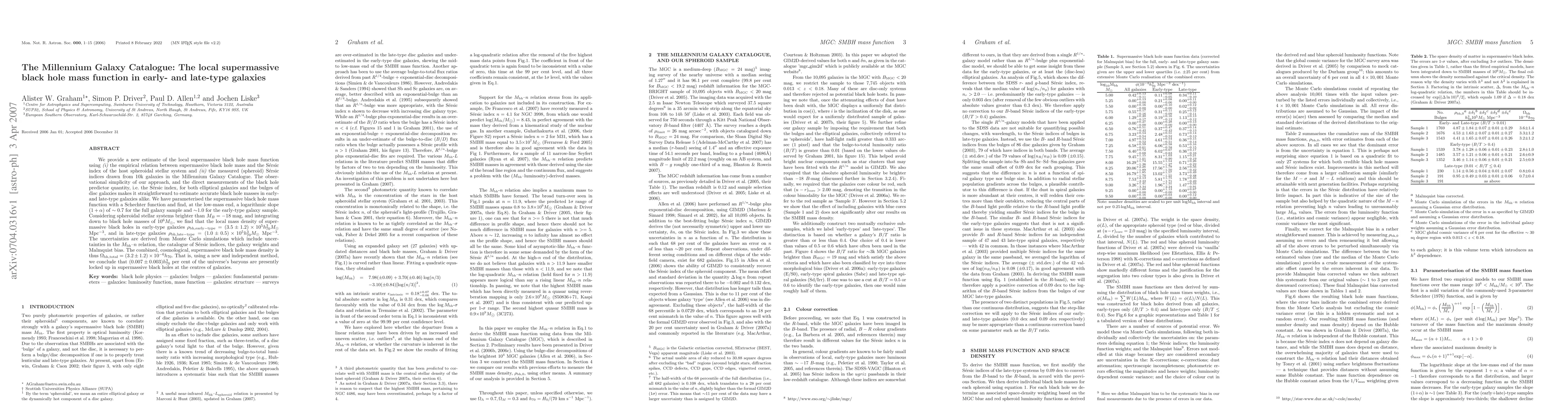 This paper estimates the local supermassive black hole mass function using the Sersic index of galaxies from the Millennium Galaxy Catalogue, finding a logarithmic slope of ~0.7 for all galaxies and ~1.0 for early-type galaxies. The local mass density of supermassive black holes is determined to be higher in early-type galaxies compared to late-type galaxies, concluding that 0.007% of the universe's baryons are in these black holes.