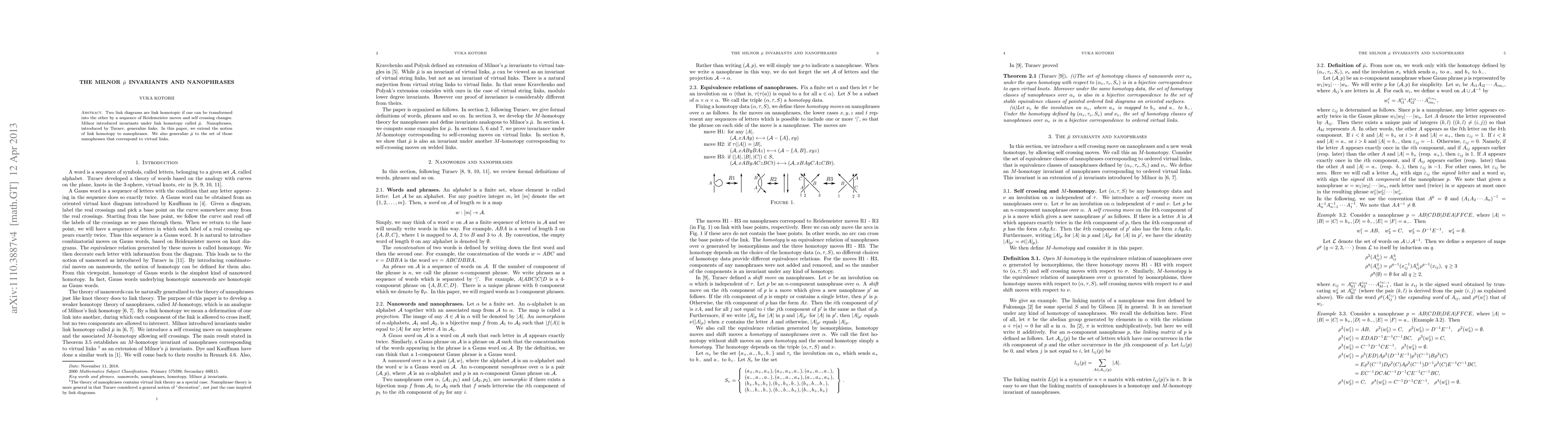 This paper extends the concept of link homotopy to nanophrases, which generalize links, and generalizes Milnor's $\bar{\mu}$ invariants to nanophrases corresponding to virtual links.